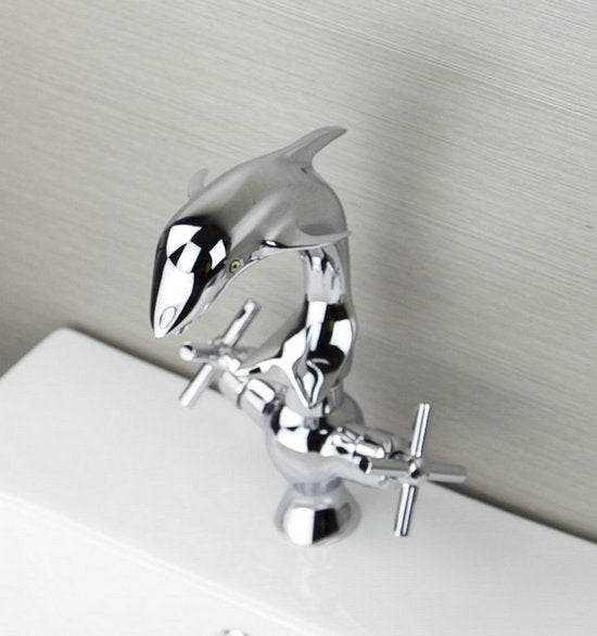 - Elegante chroom wastafelkraan in de vorm van een sierlijke dolfijn
