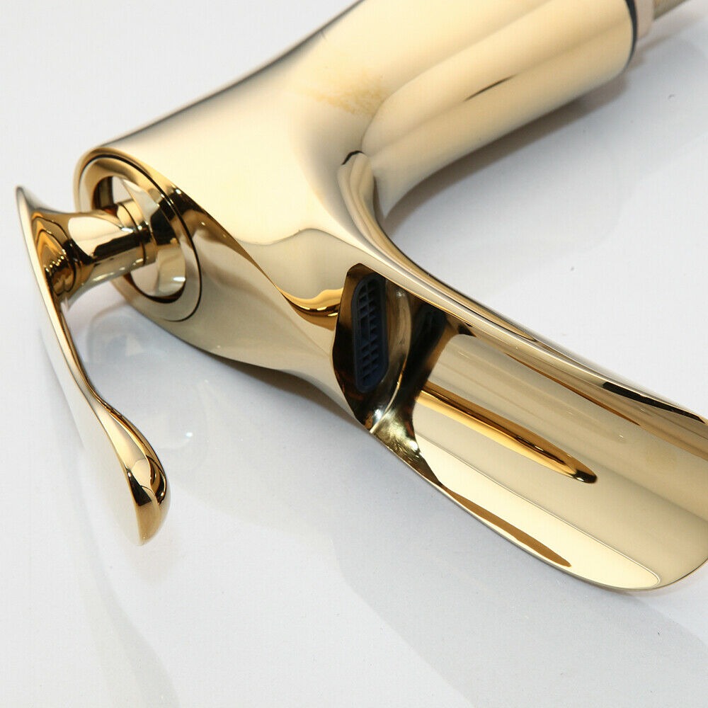 - Op deze goudkleurige wastafelkraan zit 12 maanden garantie