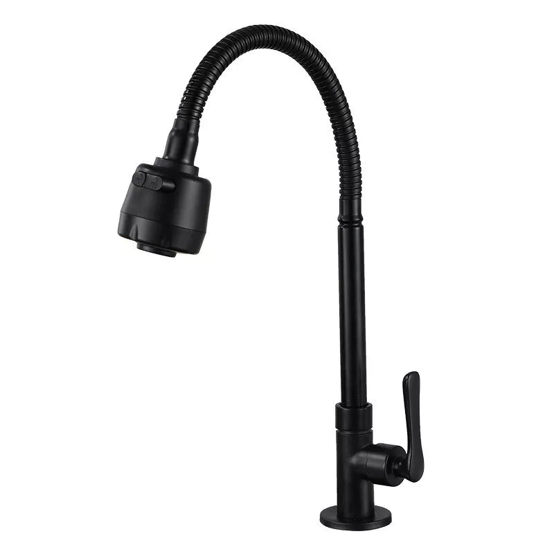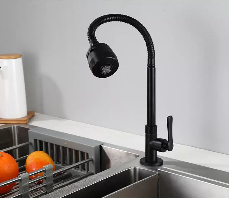 Elegante Mat Zwarte Koudwaterkraan met Flexibele Hals en Sproeikop (2 standen)
