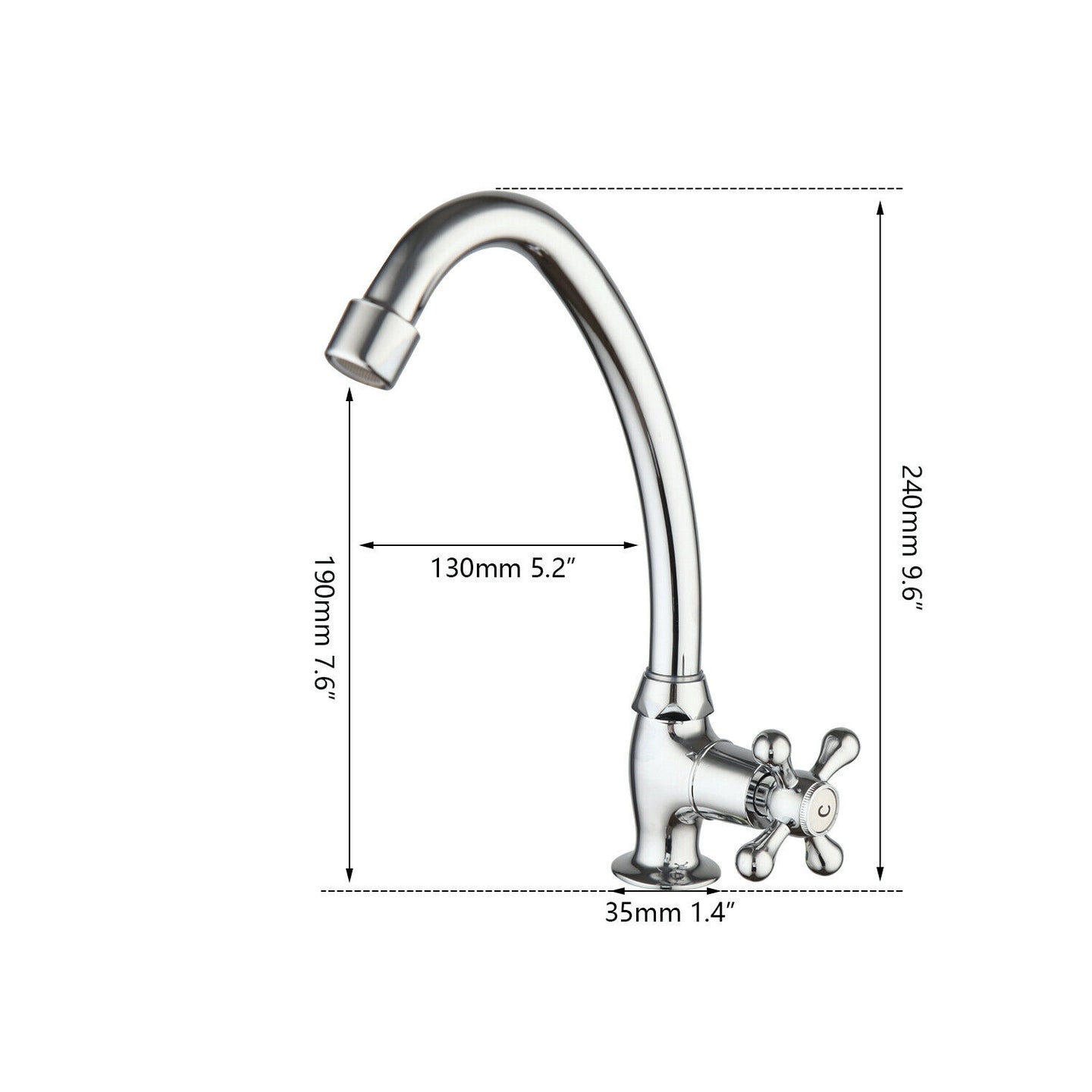 - Oversteek van de chroom kraan: 130 MM