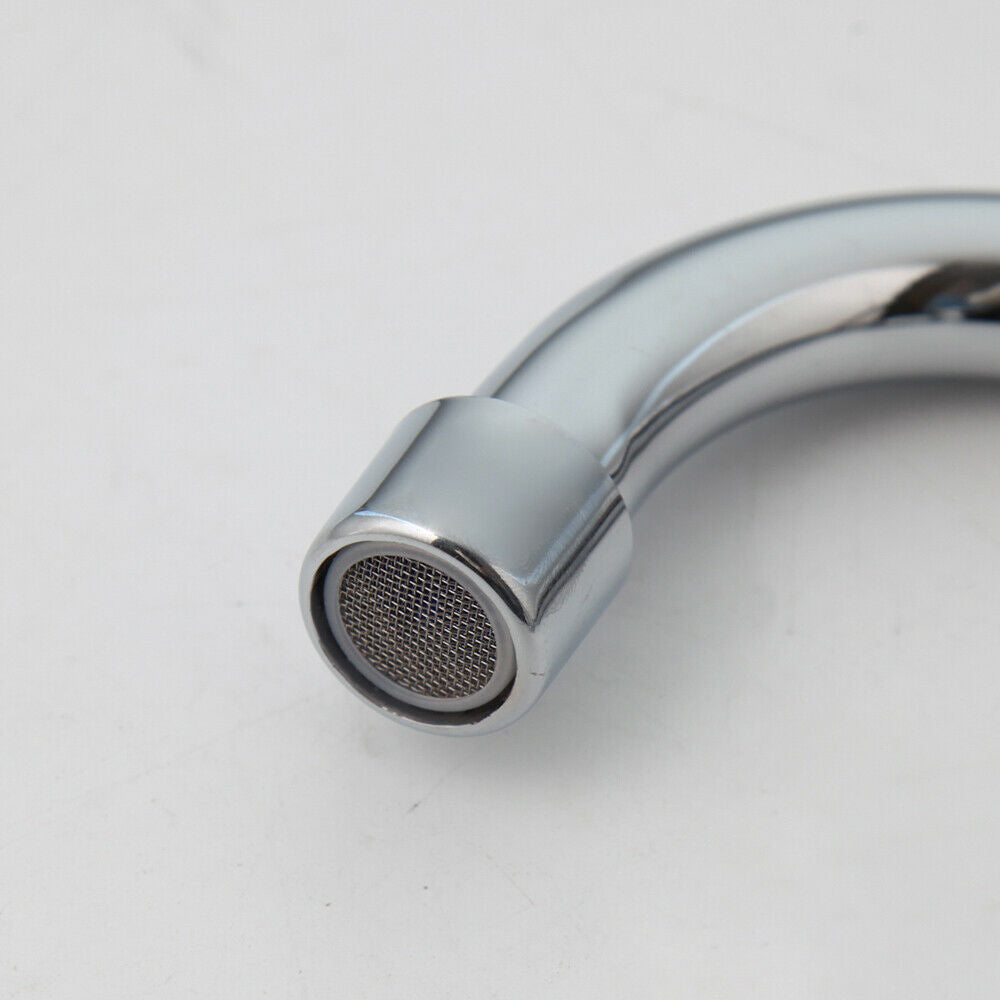 Chroom wastafelkraan met een lange uitloop.