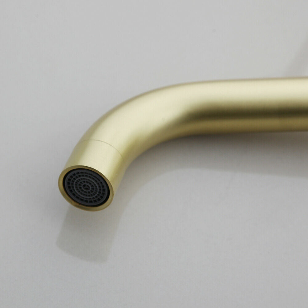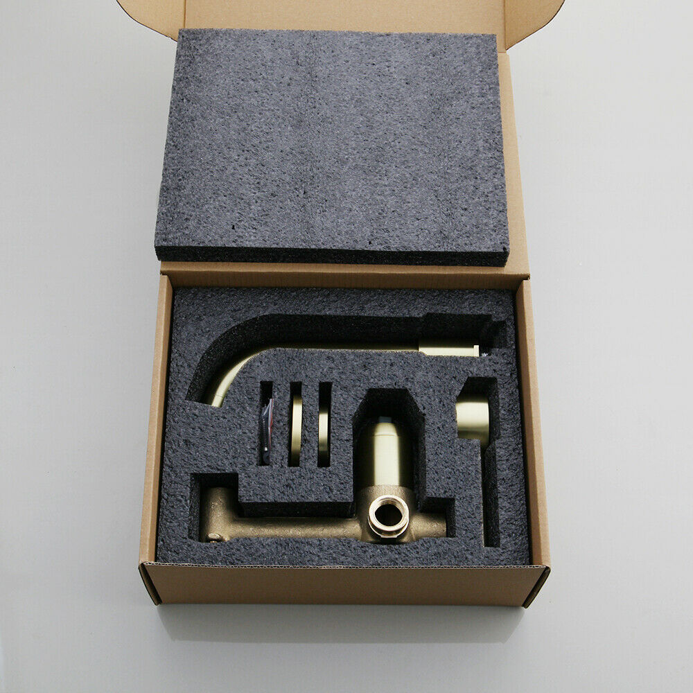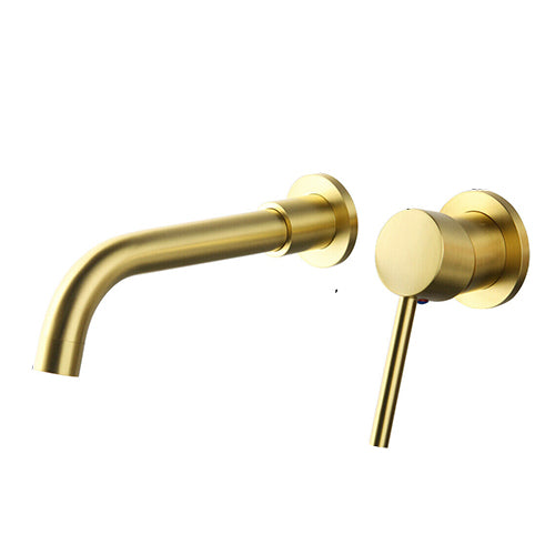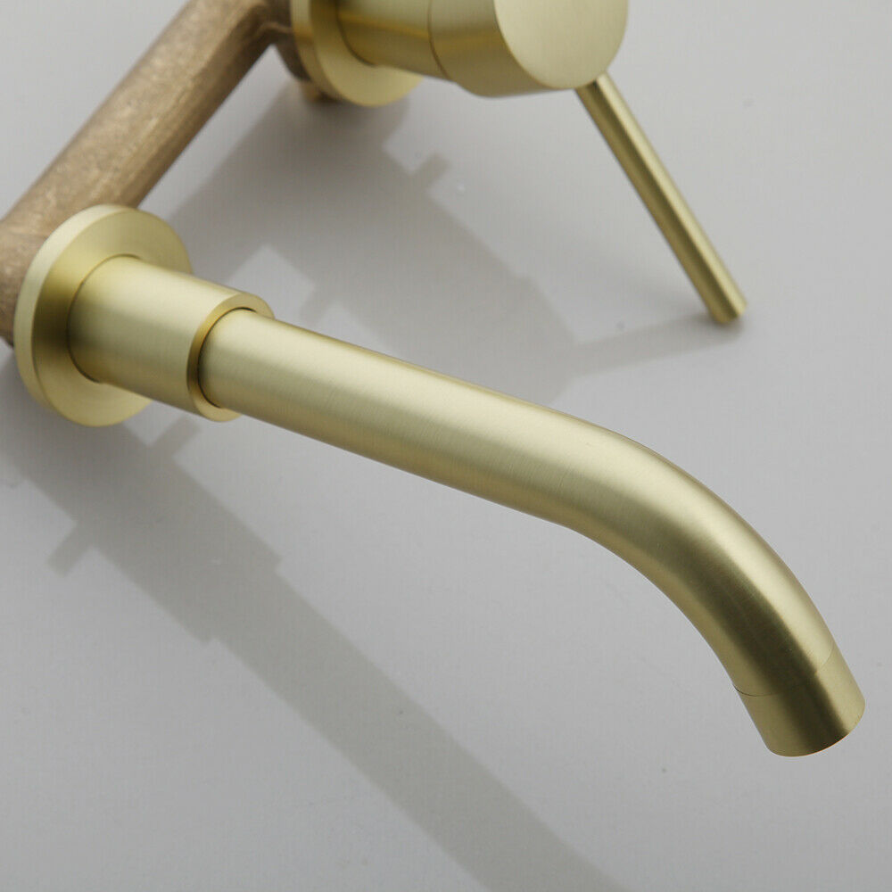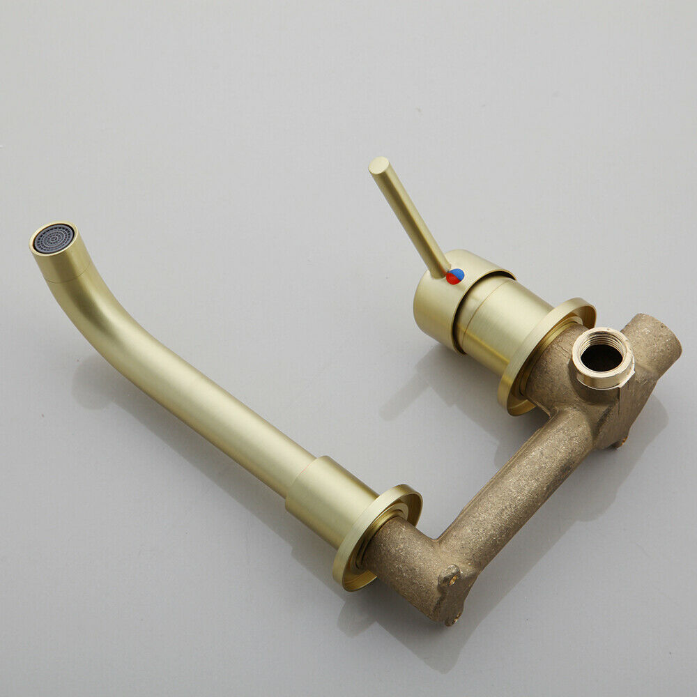 Geborsteld goud muurkraan is een warm en koud model en heeft een handige eenhand bediening.
