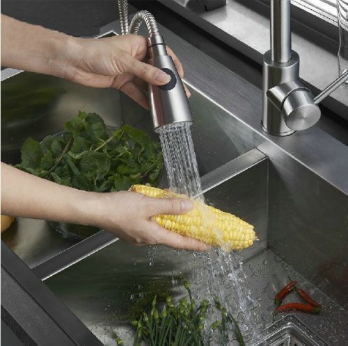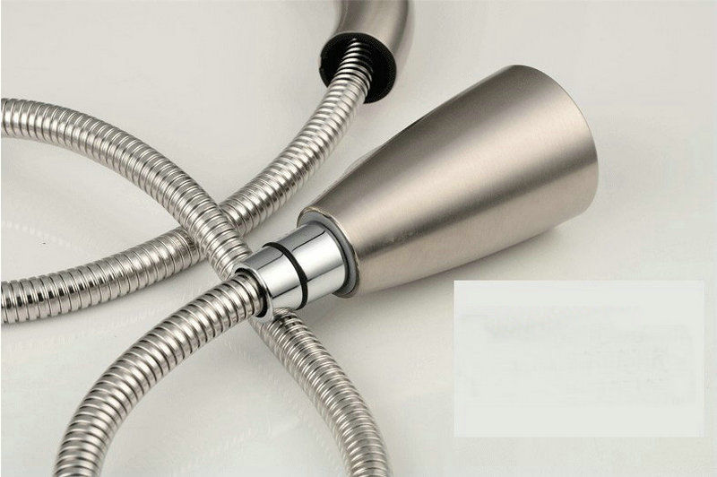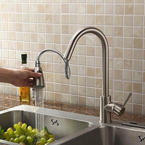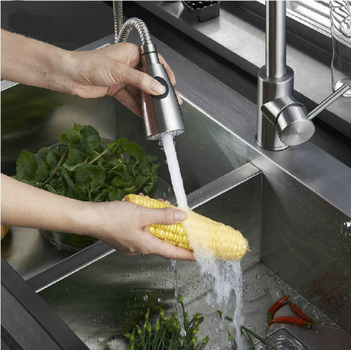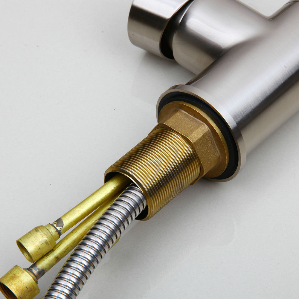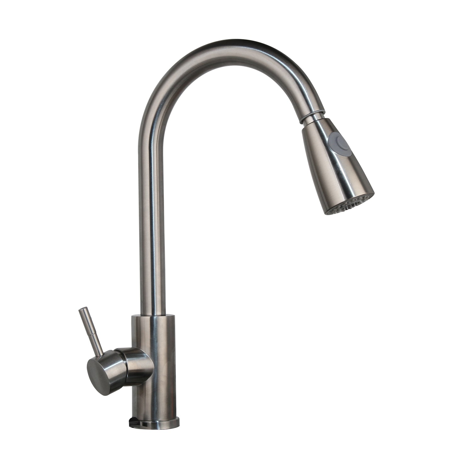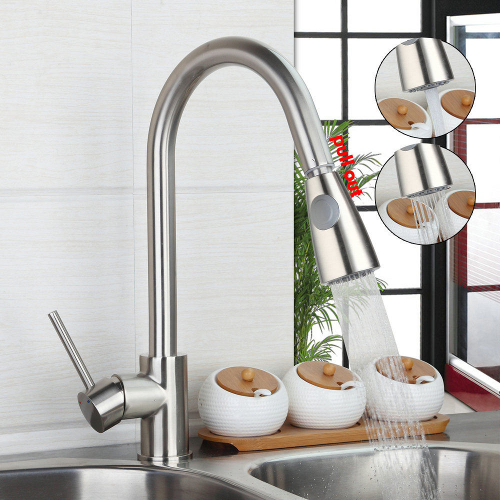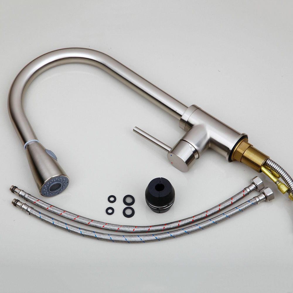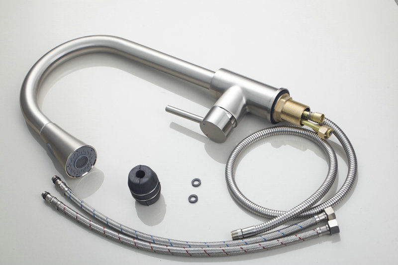 - Geborstelde nikkel keukenkraan met uittrekbare sproeikop.
