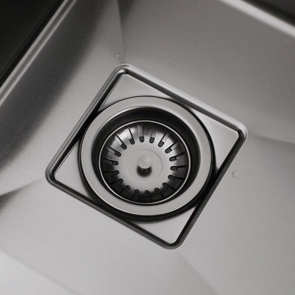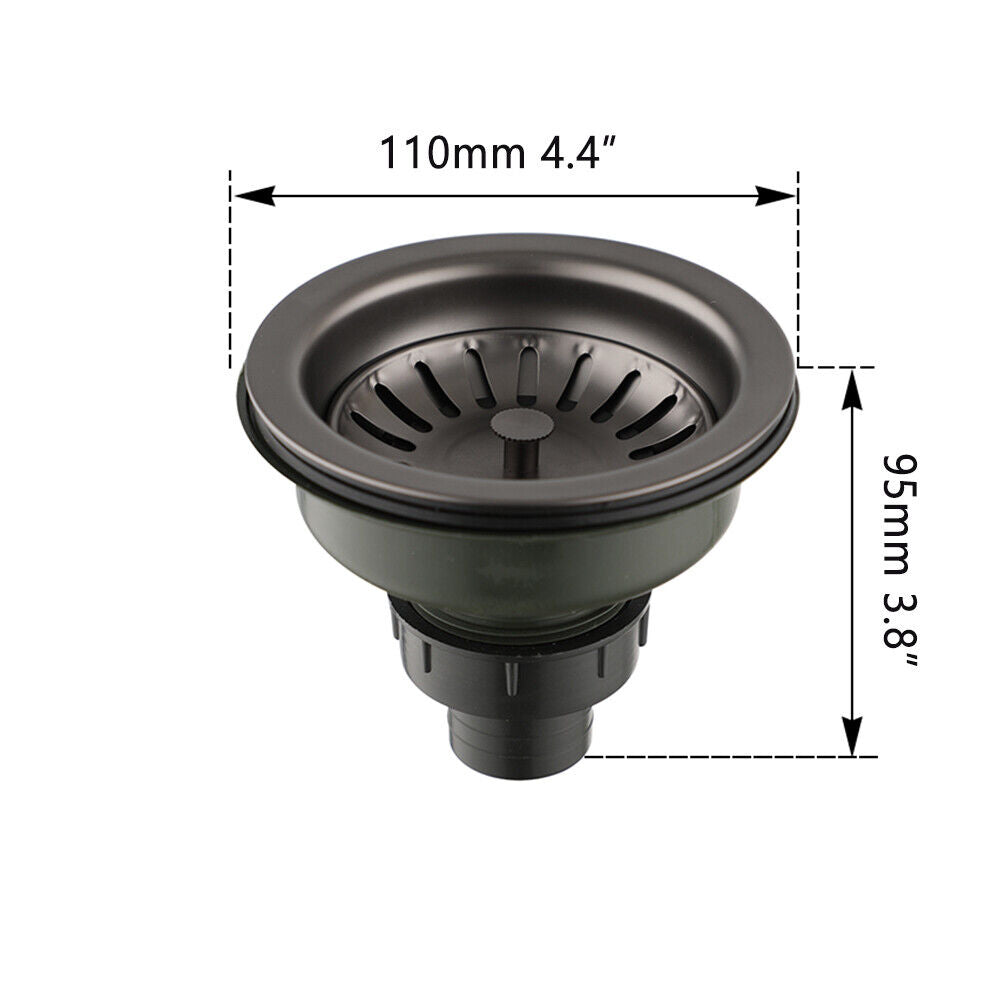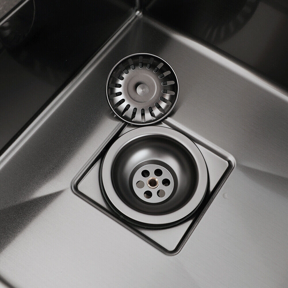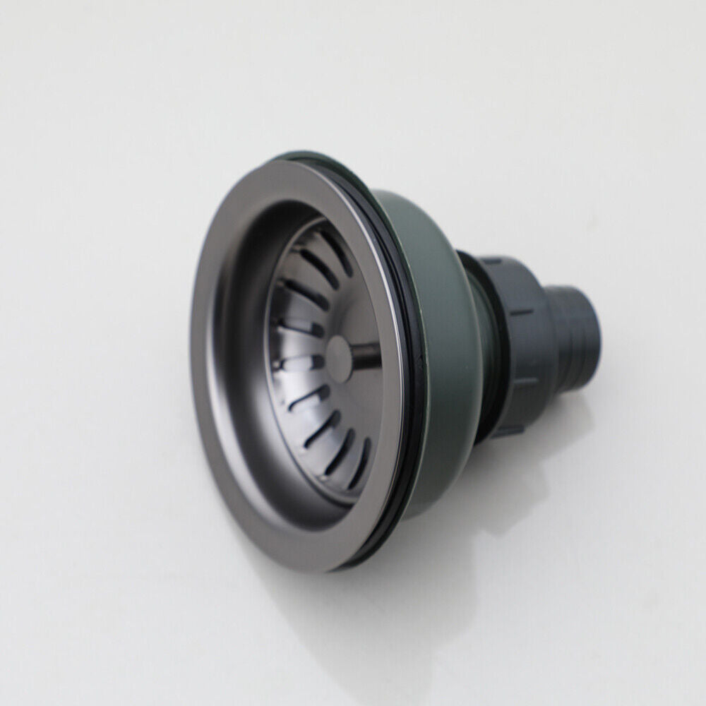 De gootsteen afvoer heeft een Gun metal afwerking en is voorzien van een PVC onderzijde.