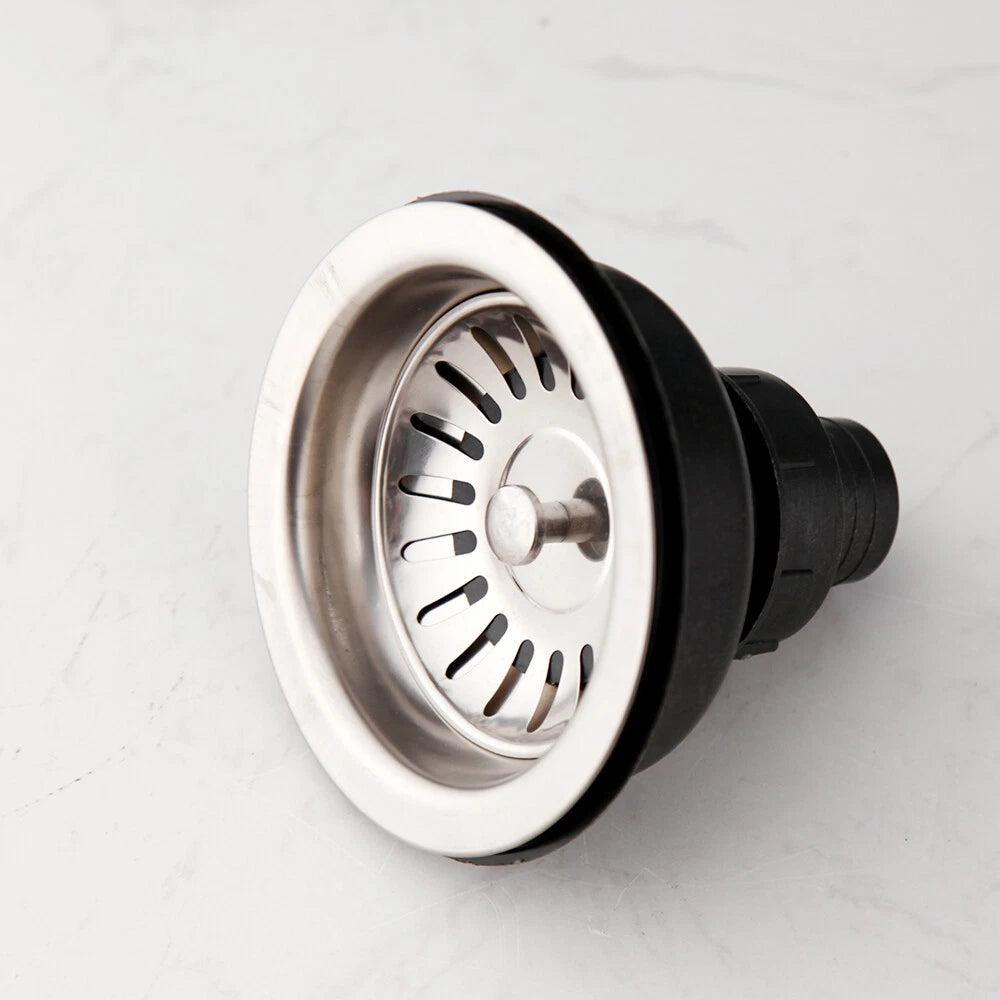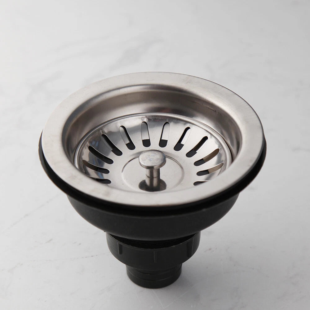 Stijlvolle gootsteenafvoer met een moderne geborsteld nikkel afwerking. De afvoer is voorzien van een stevige PVC onderzijde en een afneembaar rooster, waardoor reinigen eenvoudig is. Dankzij het drukmechanisme kan de afvoer gemakkelijk worden geopend en gesloten door het midden in te drukken.