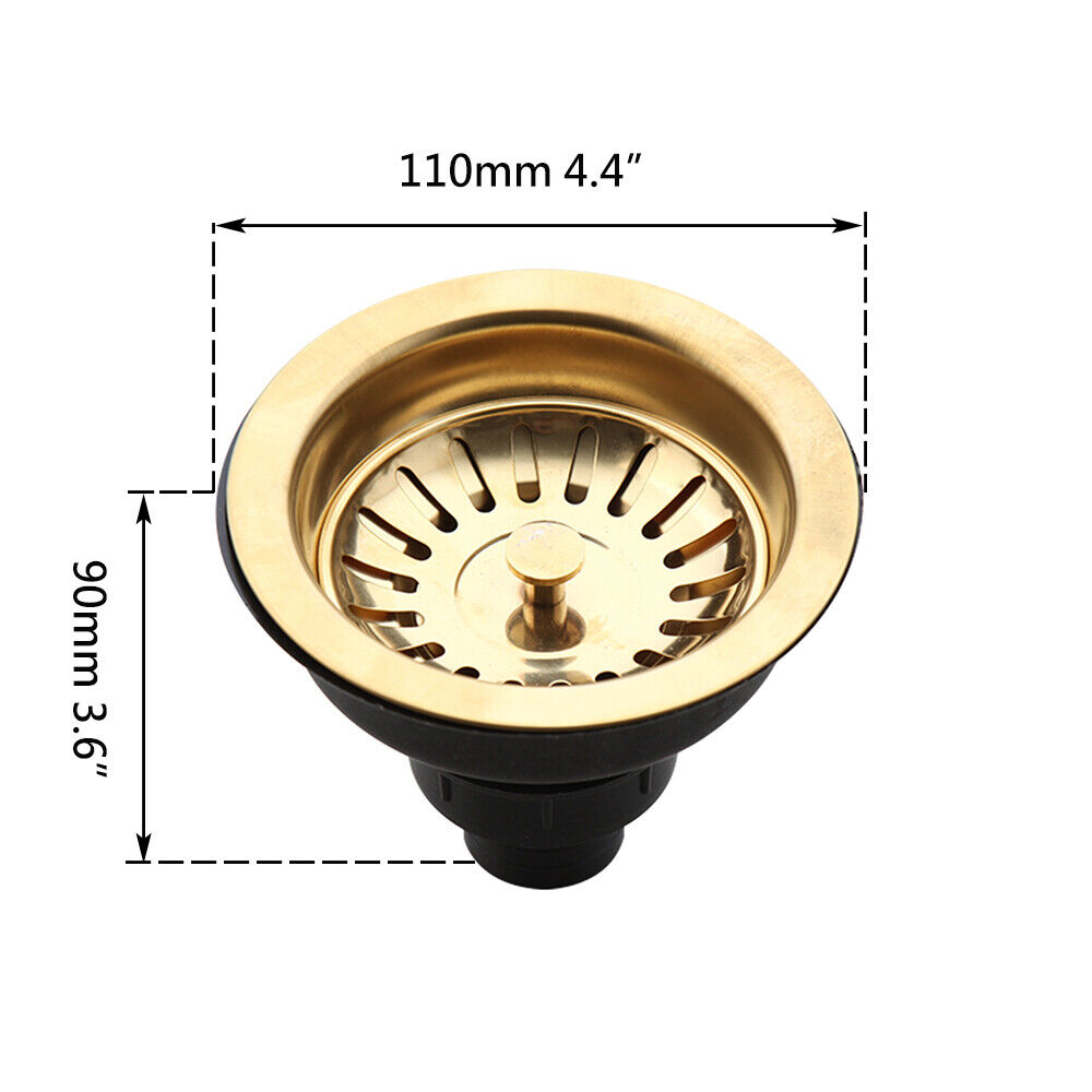 Enkele afmetingen en details van de goudkleurige gootsteen afvoer: