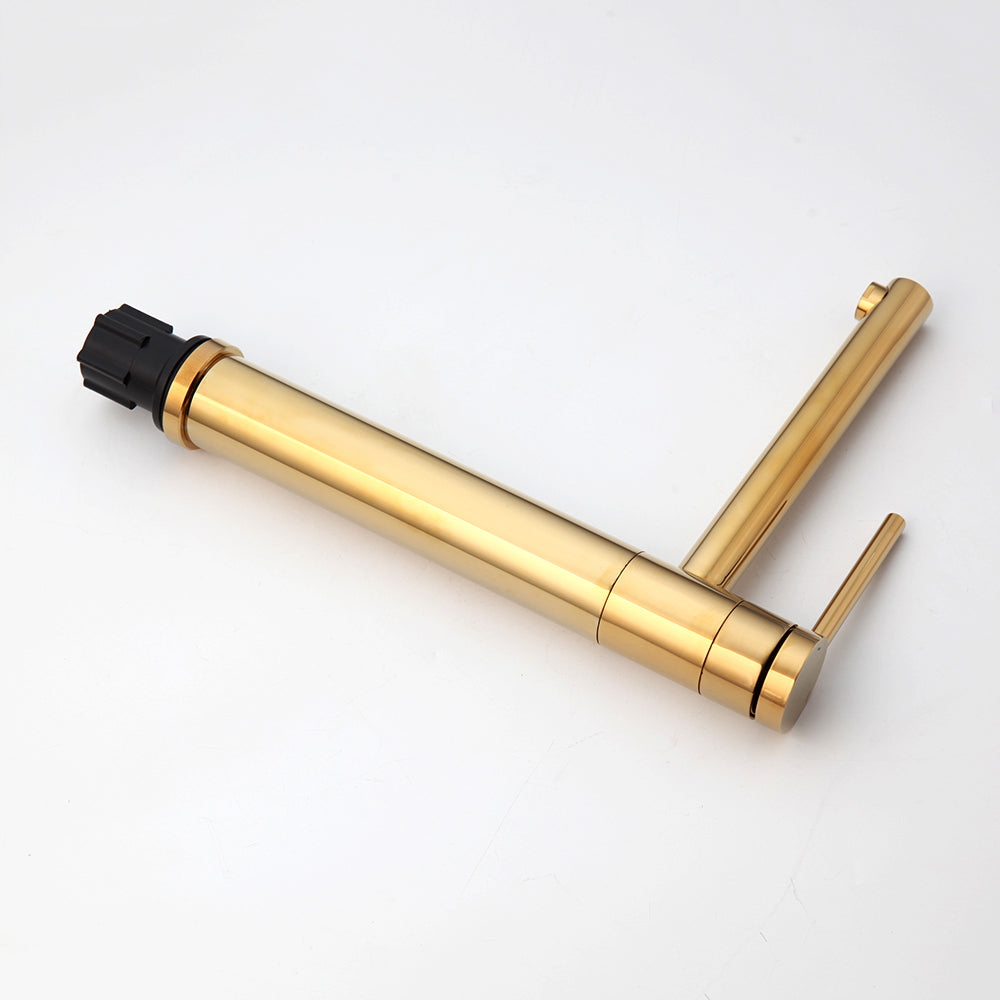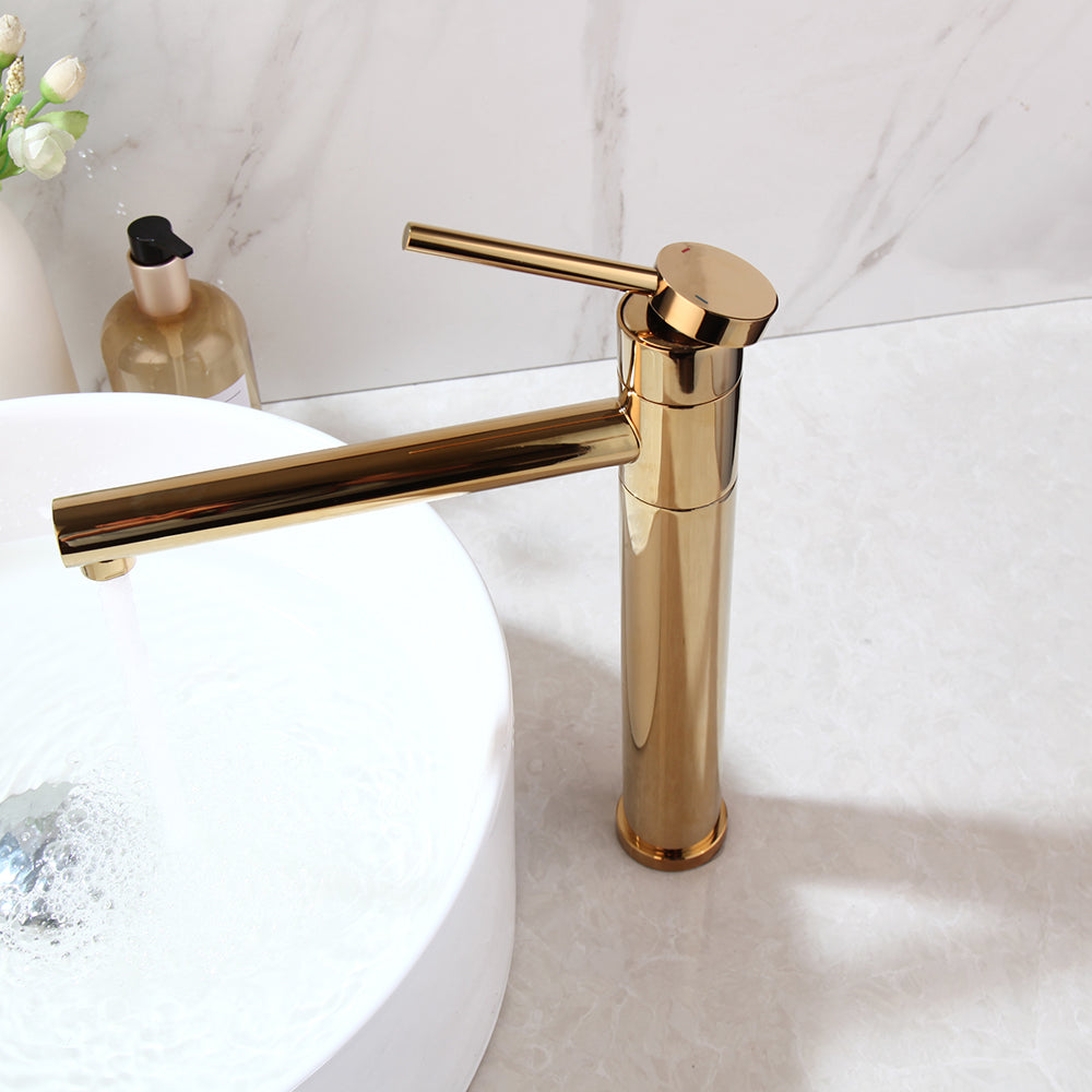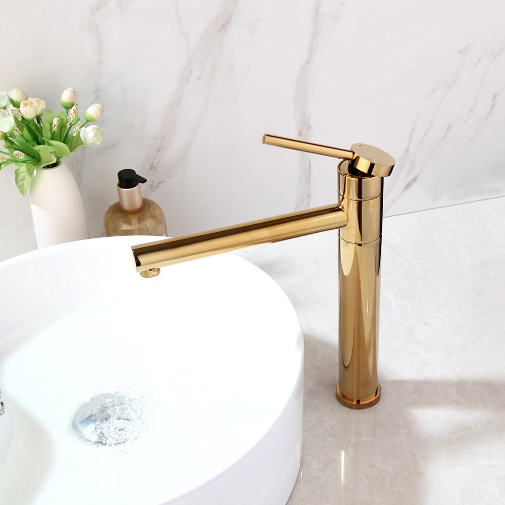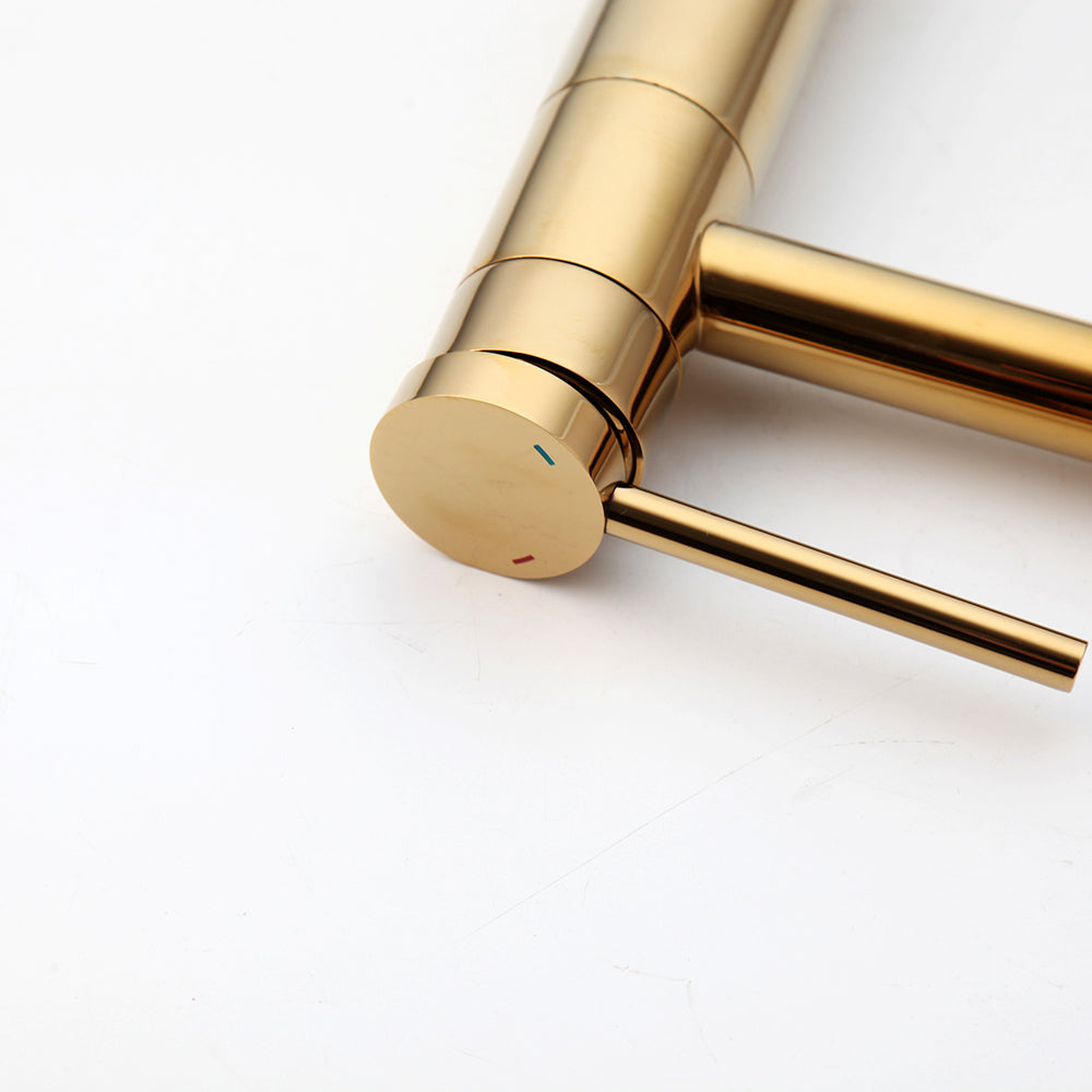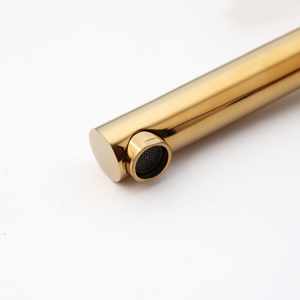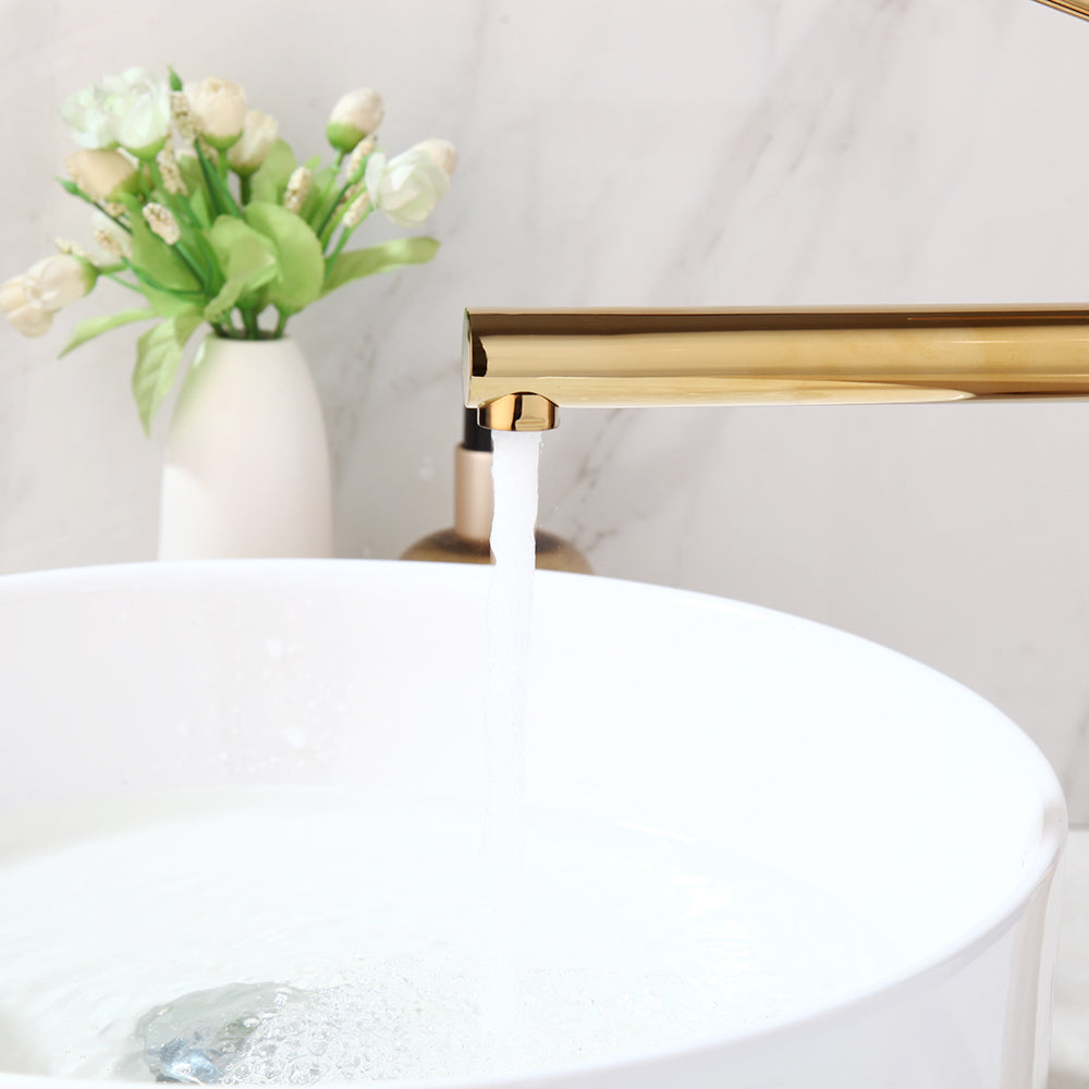 - Goudkleurige wastafelkraan met zwenkbare uitloop