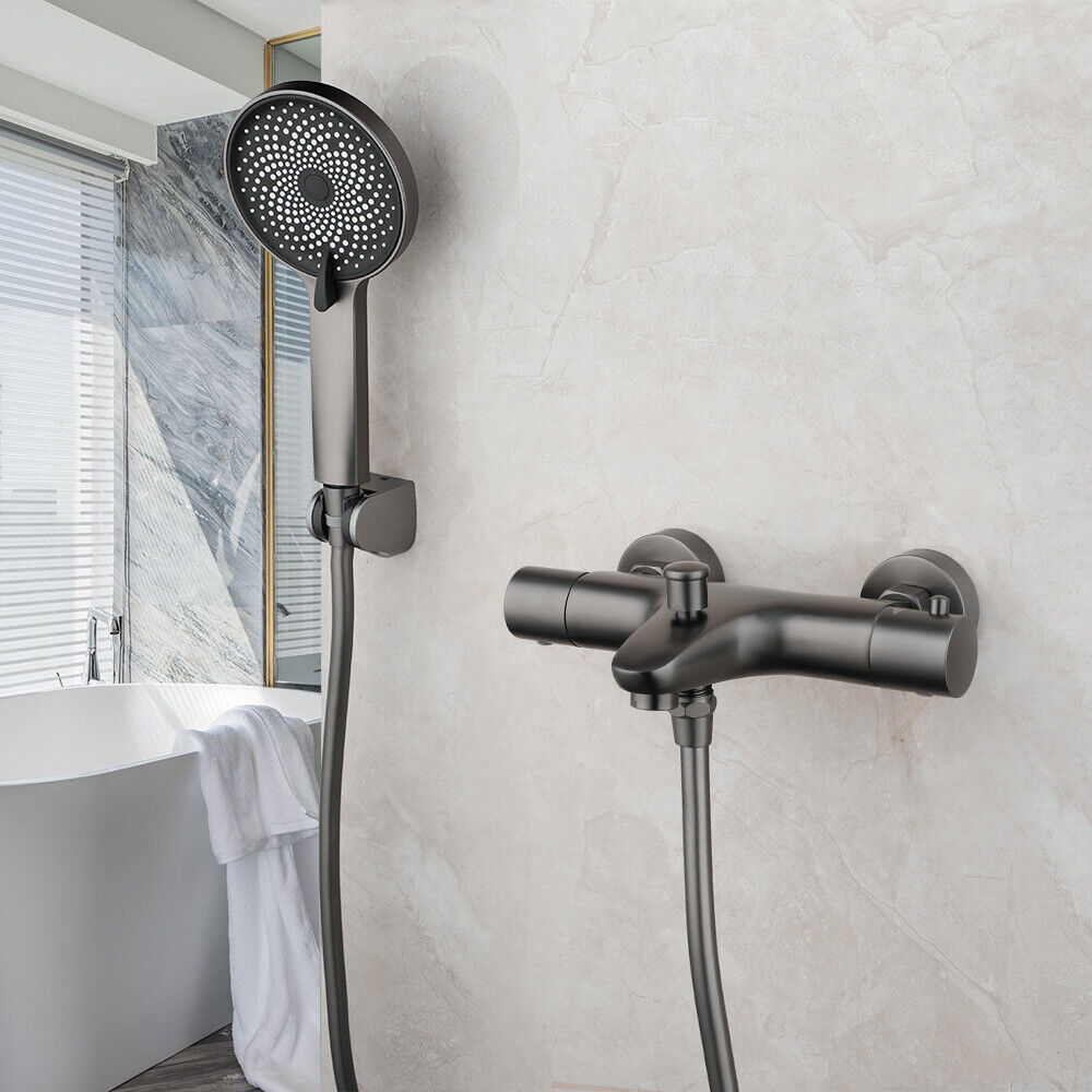 - Gun metal thermostatische badkraan met handdouche