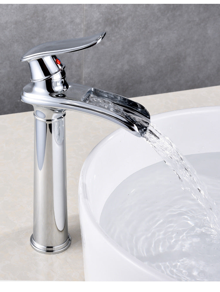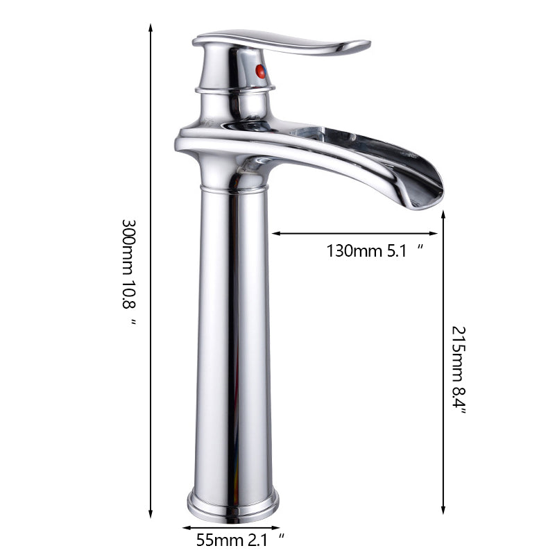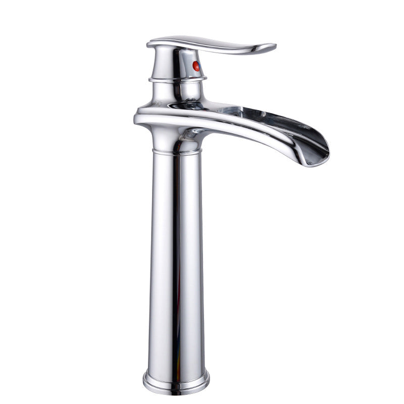 Hoge chroom wastafelmengkraan met waterval-uitloop