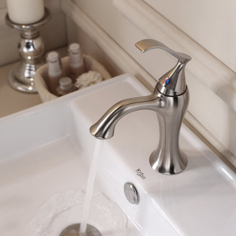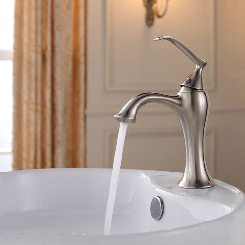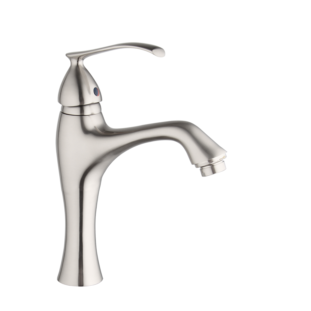 Klassieke nikkel geborstelde wastafelkraan welke geborsteld nikkel is afgewerkt: