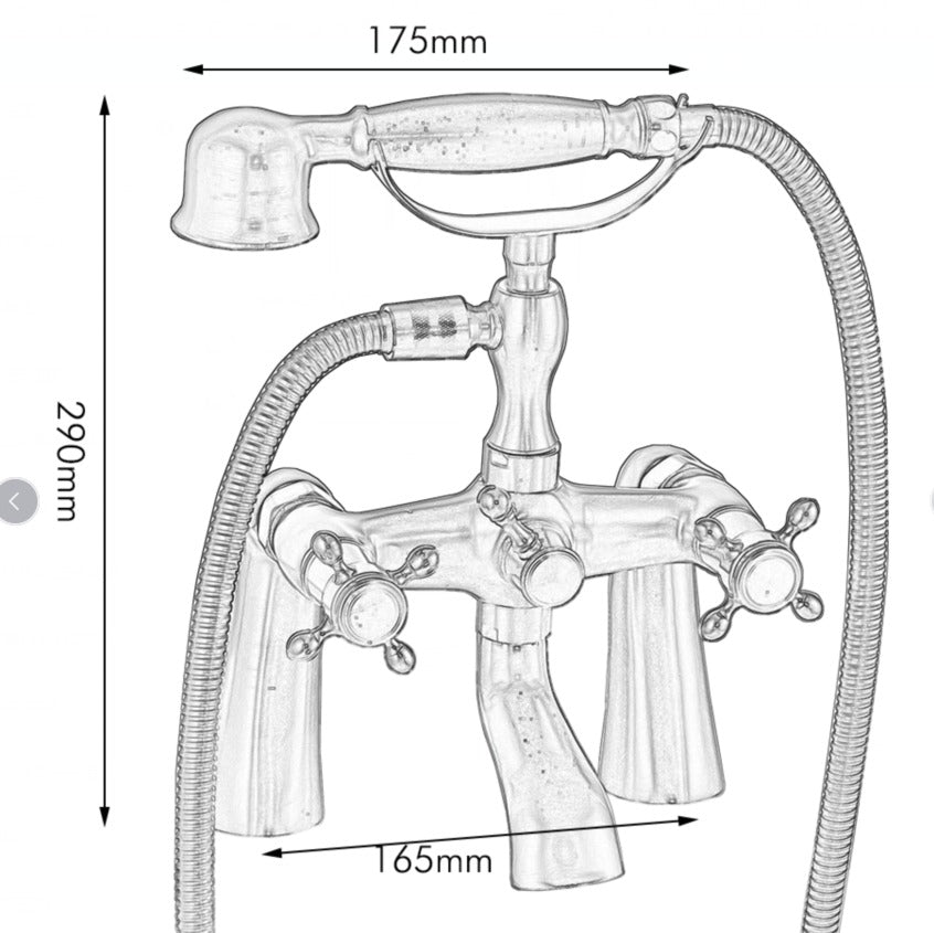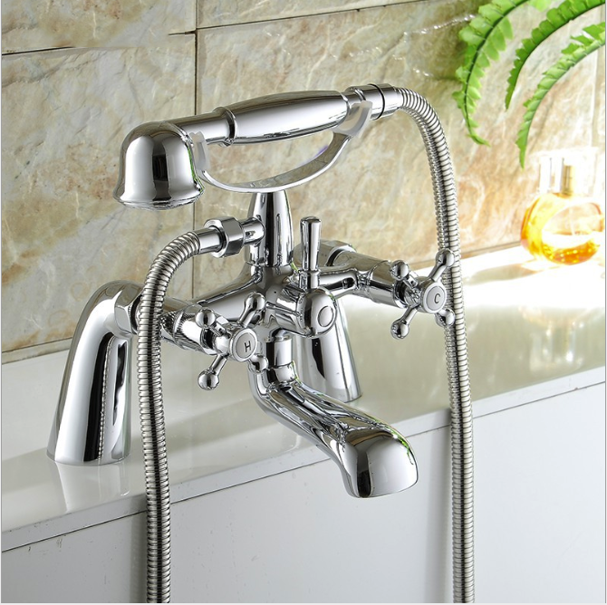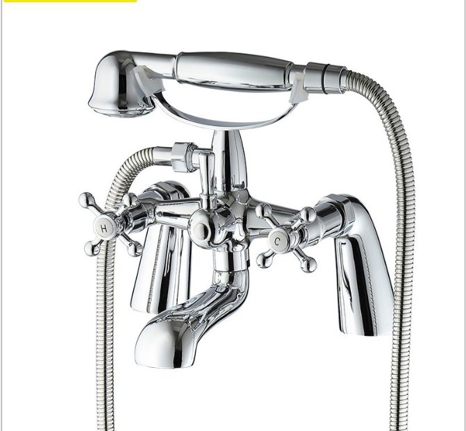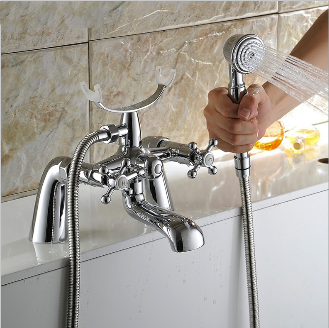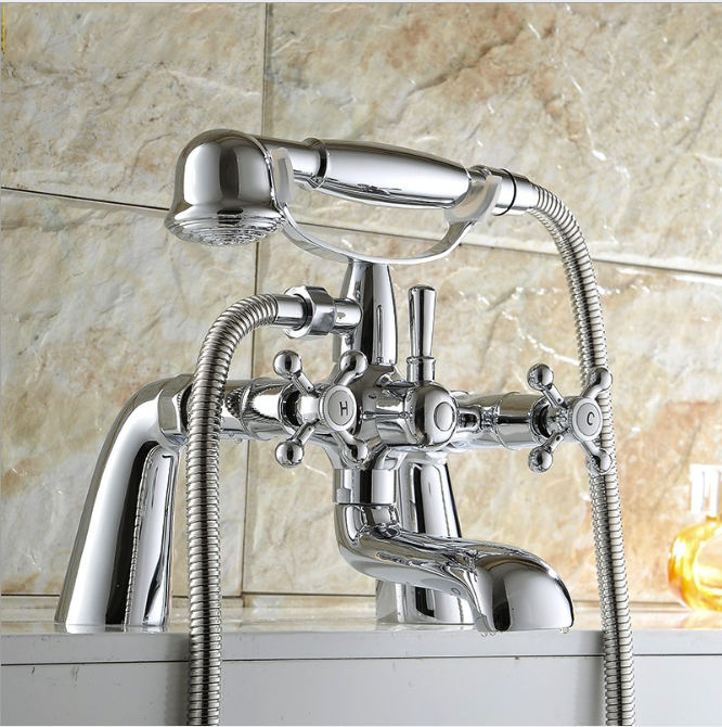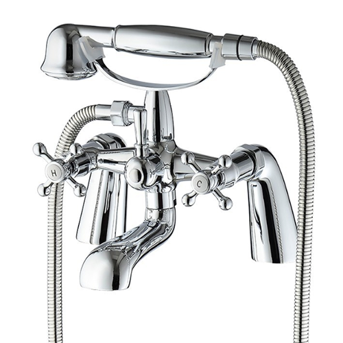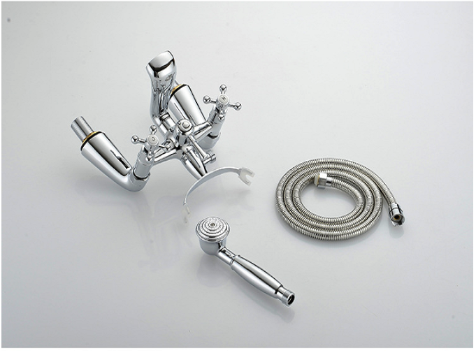 Landelijke chroom badrand kraan met nostalgische handdouche.