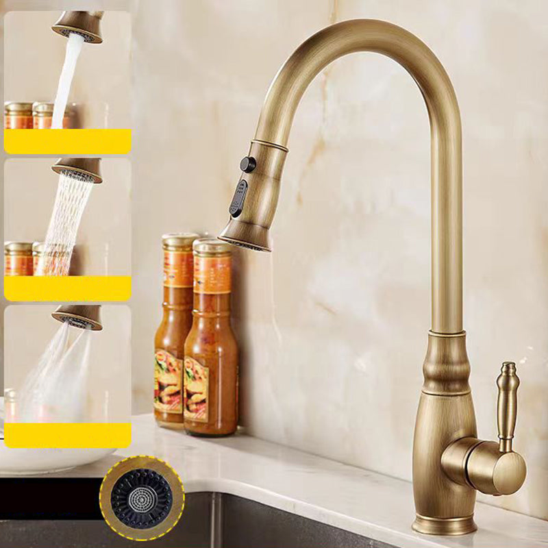 Op zoek naar een stijlvolle, landelijke kraan met modern gemak en optimale controle in de keuken? Bestel vandaag nog en maak je keuken compleet met deze antiek bronzen keukenkraan met uittrekbare 3-standen sproeikop.