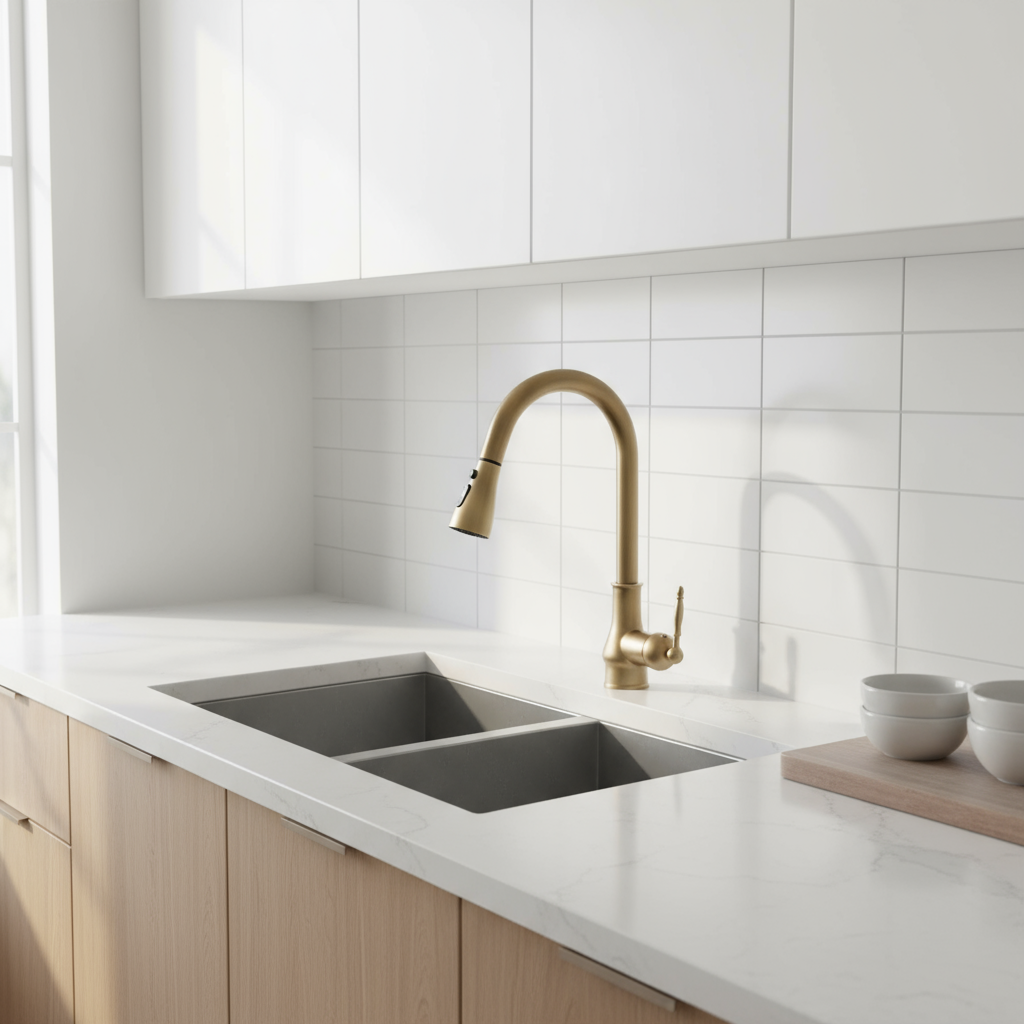 - Landelijke keukenkraan antiek brons – uittrekbare sproeikop (3 standen)