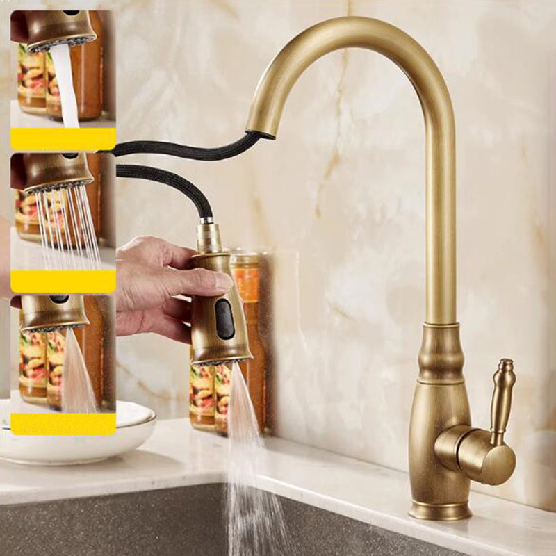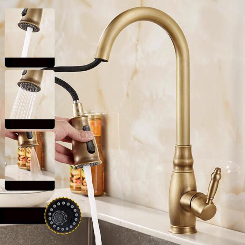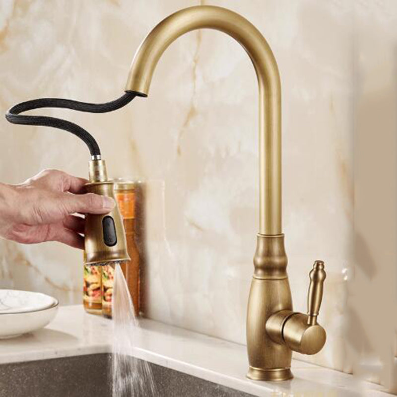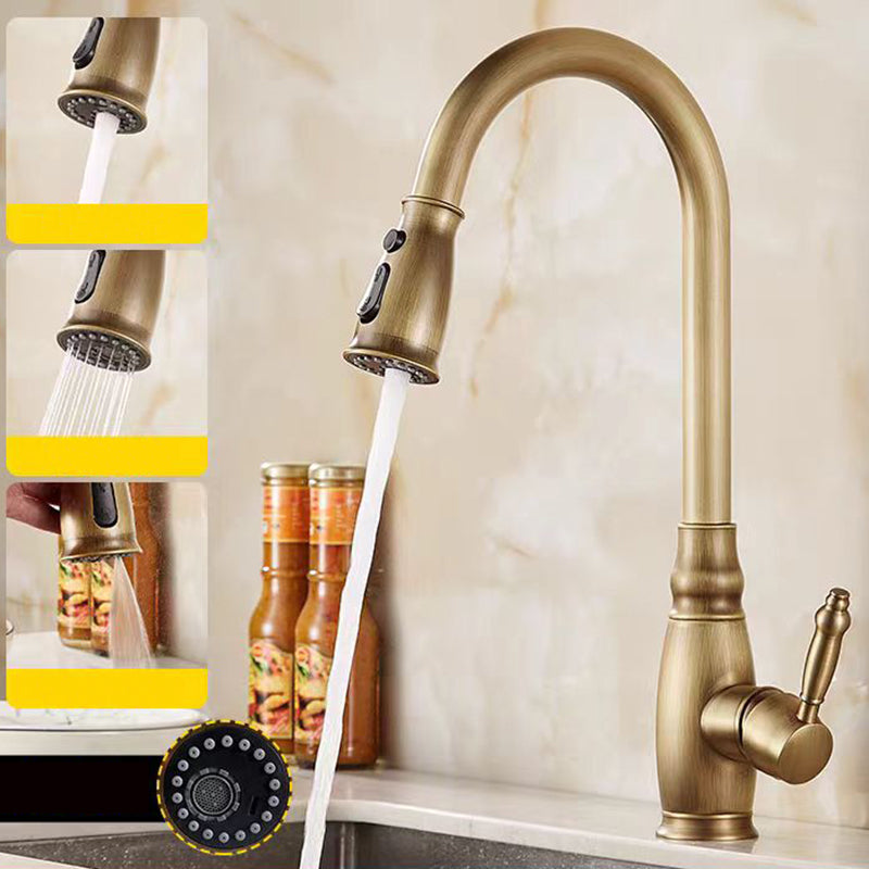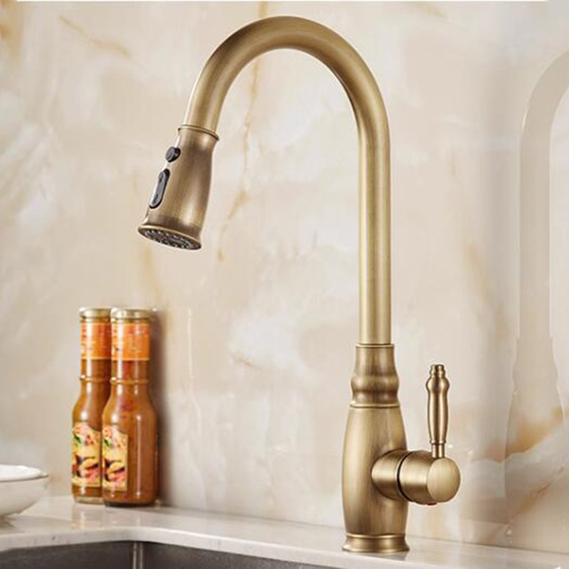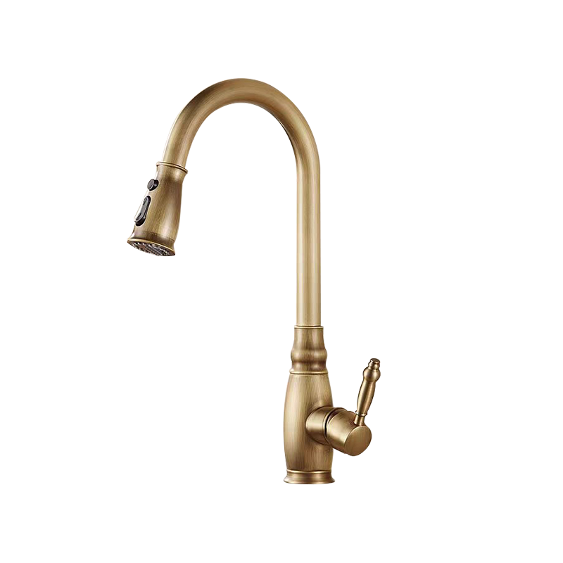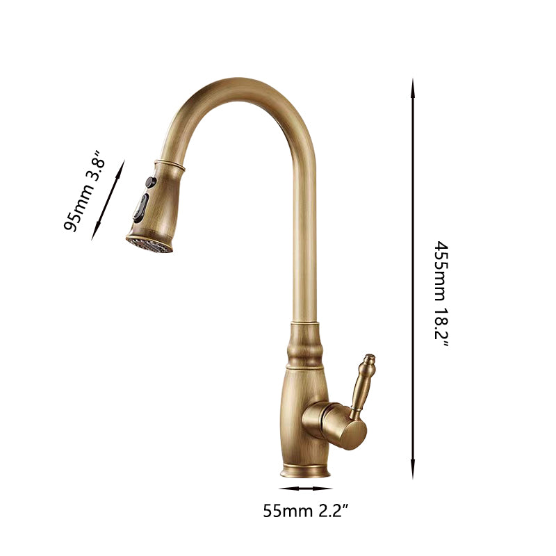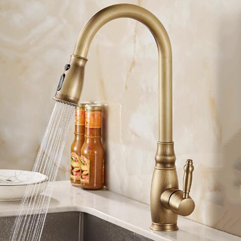 Landelijke Keukenkraan met uittrekbare kop – antiek brons
