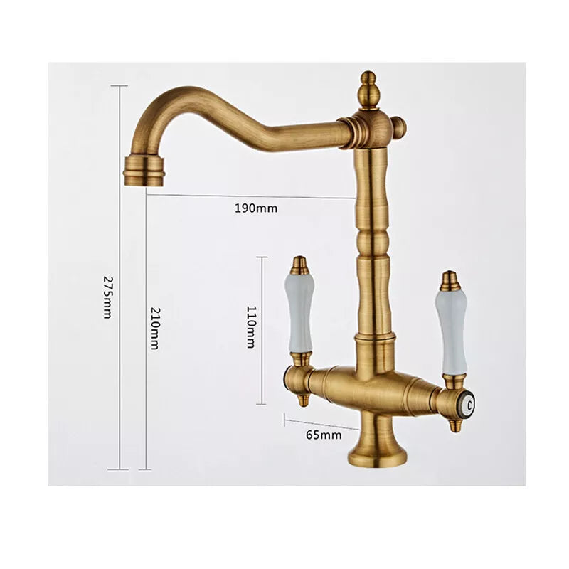 Met zijn landelijke uitstraling, robuuste materialen en praktische eigenschappen biedt deze bronzen keukenkraan de perfecte balans tussen stijl en functionaliteit. Voeg een elegante en duurzame touch toe aan uw interieur en geniet van een tijdloze klassieker in uw keuken of badkamer!