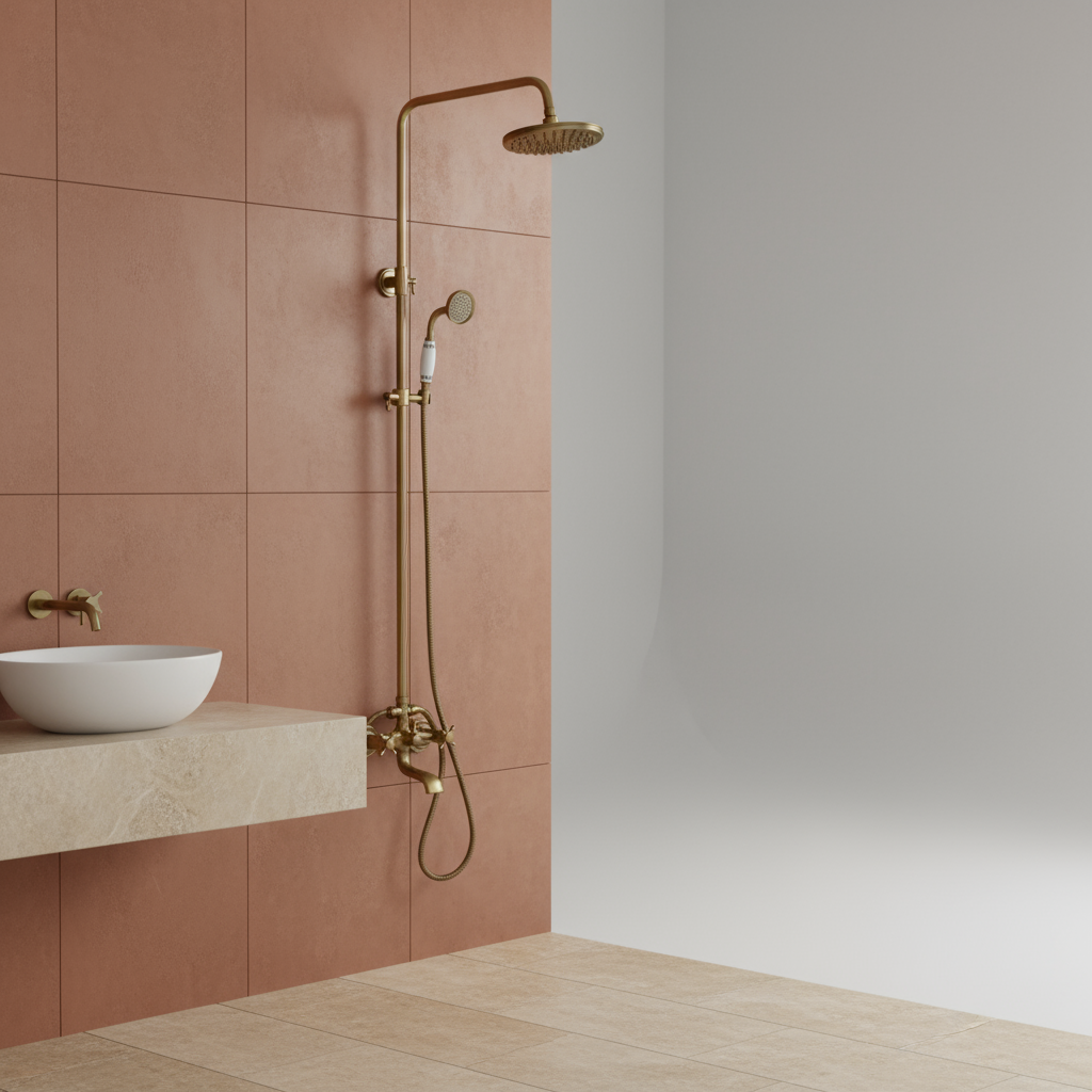 Landelijke opbouw regendouche met baduitloop – bronskleur