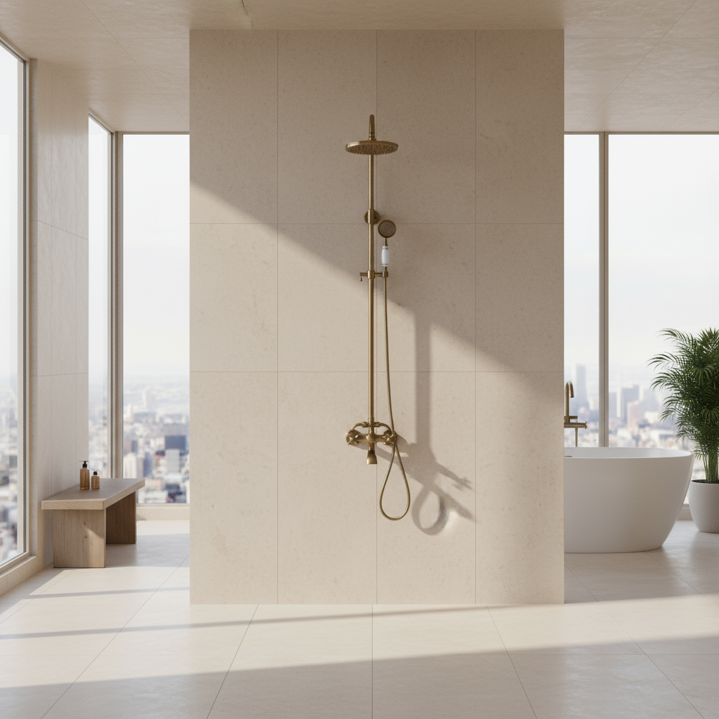 Geef je badkamer een warme, klassieke uitstraling met modern comfort. Bestel vandaag nog deze landelijke opbouw regendouche met baduitloop in bronskleur.