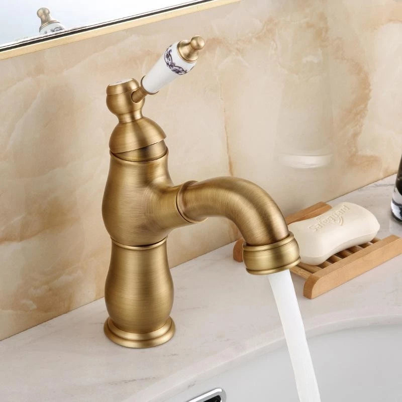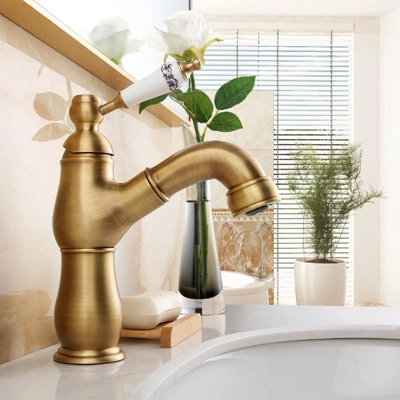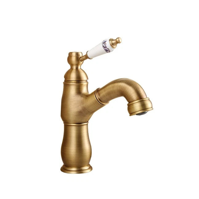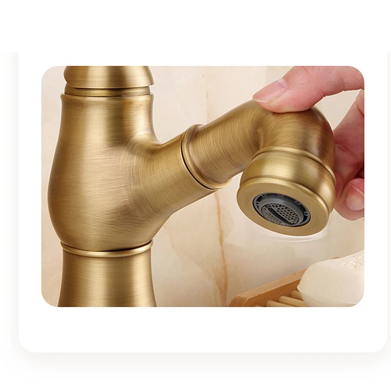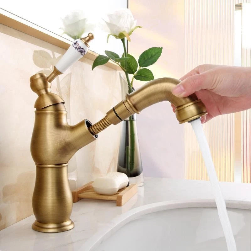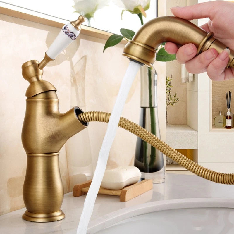 - Landelijke wastafelkraan met uittrekbare sproeikop – bronskleur
