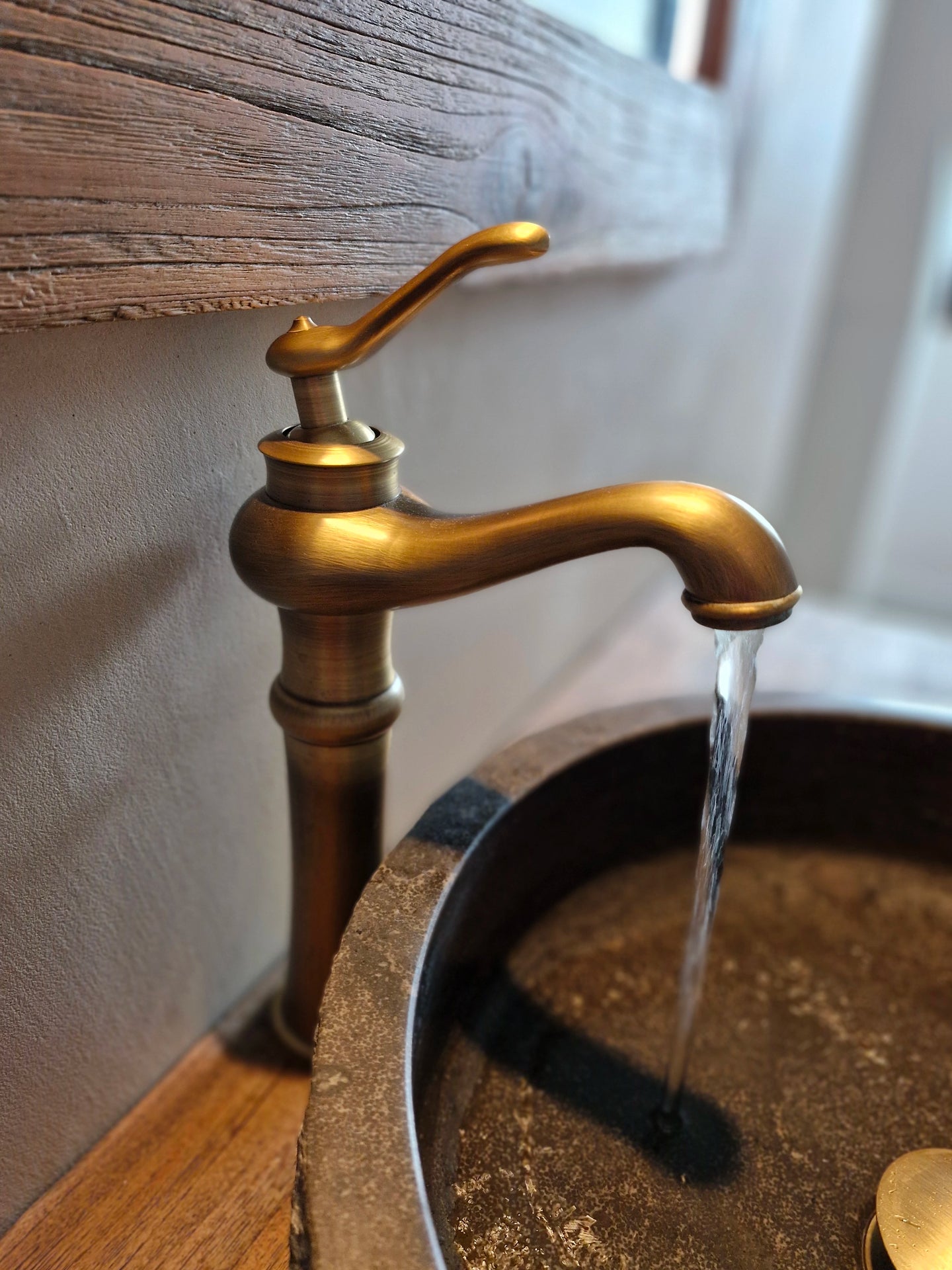 Deze landelijke bronzen wastafelkraan geeft je badkamer direct een warme, klassieke uitstraling. De eengreepsbediening maakt het mengen van warm en koud water eenvoudig en comfortabel. Gemaakt van massief messing met een duurzame bronzen afwerking voor jarenlange betrouwbaarheid.