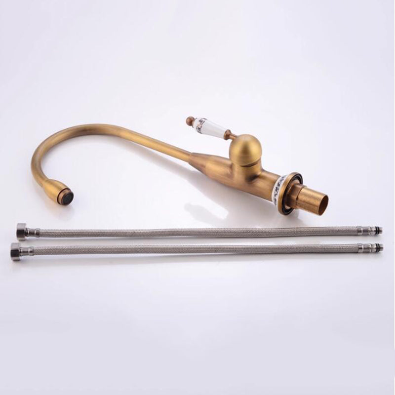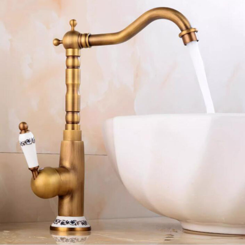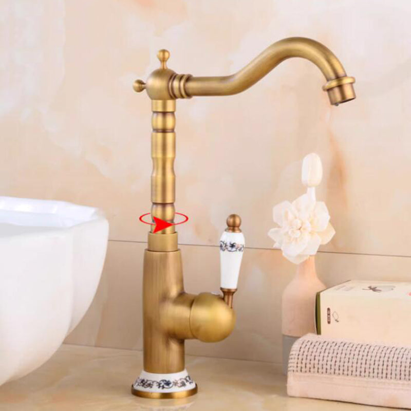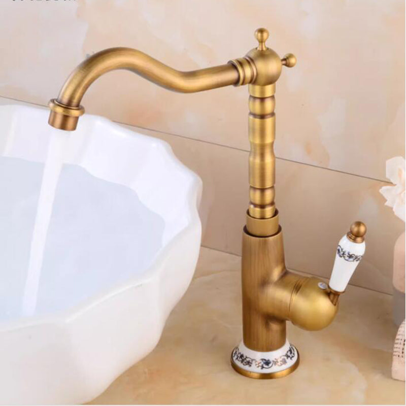 - Landelijke wastafelmengkraan | Bronskleurig met keramieke hendel