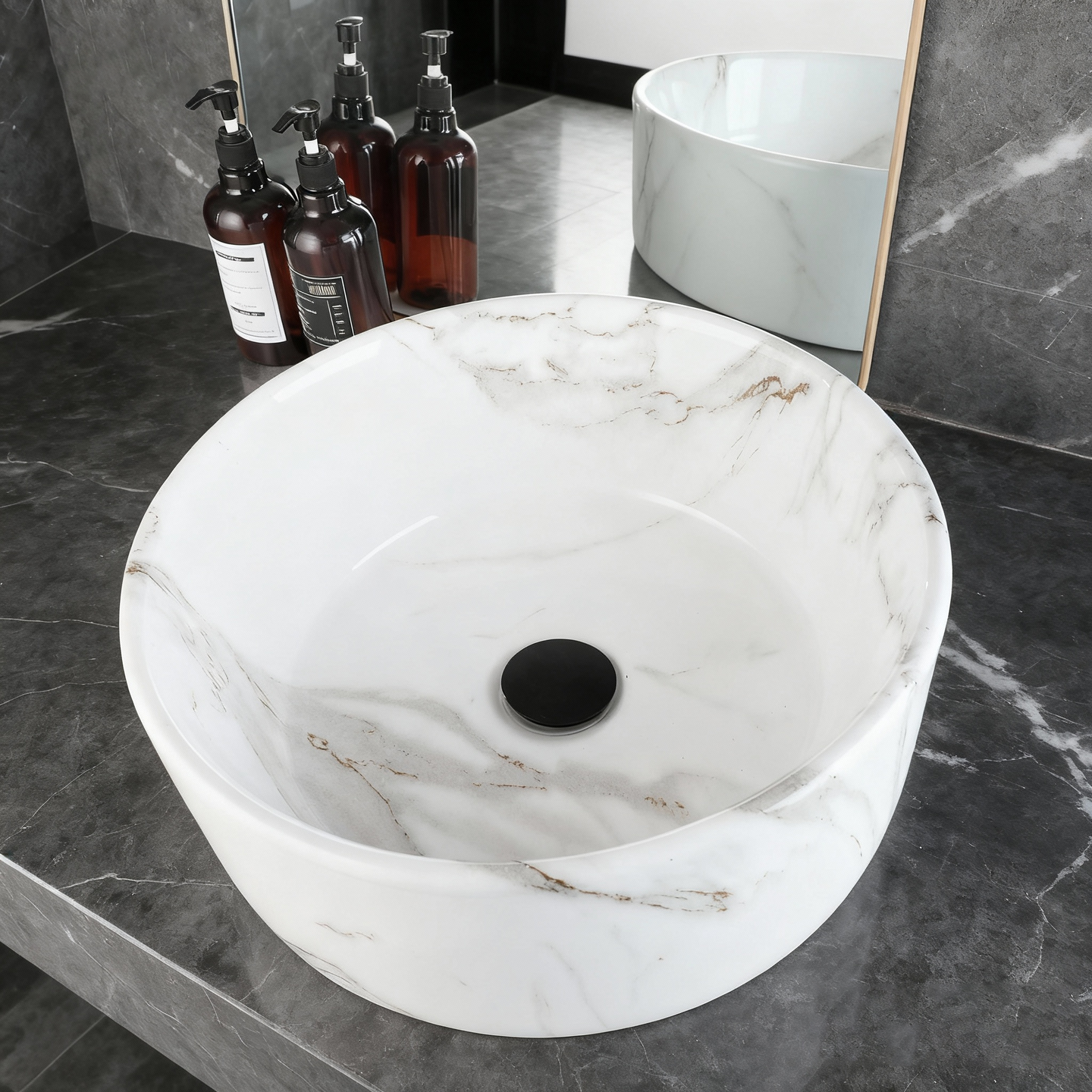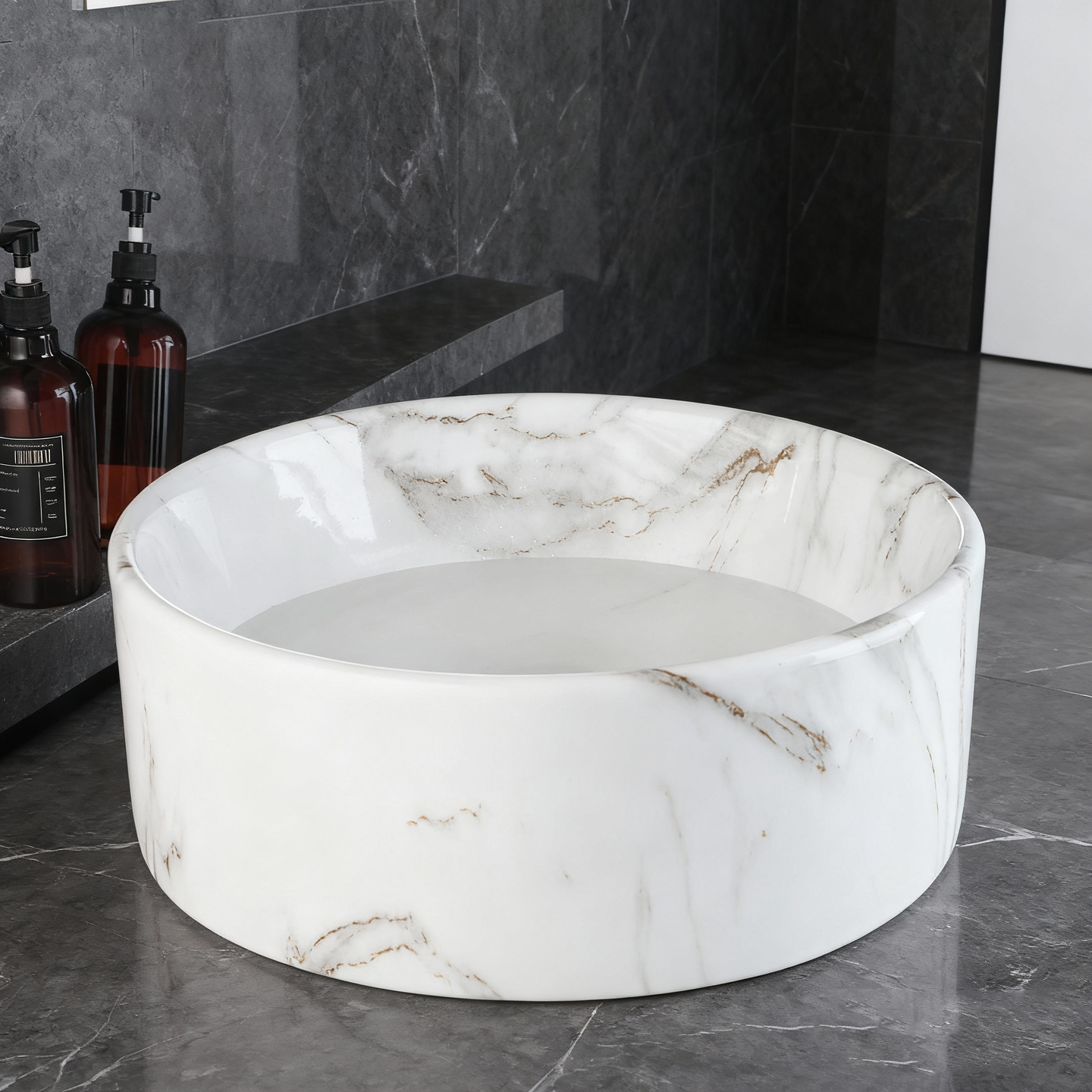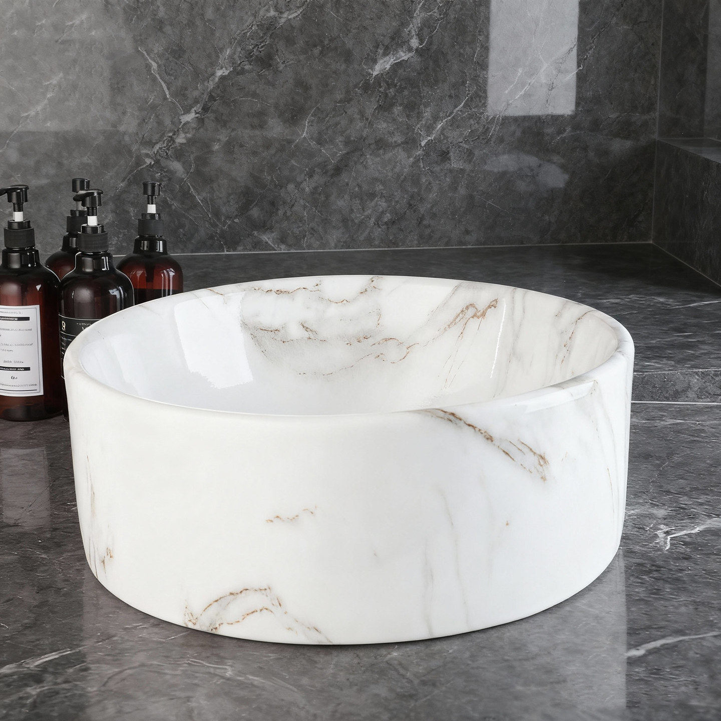 - Malvizza Luxe Keramische Waskom – Marmerlook Wit