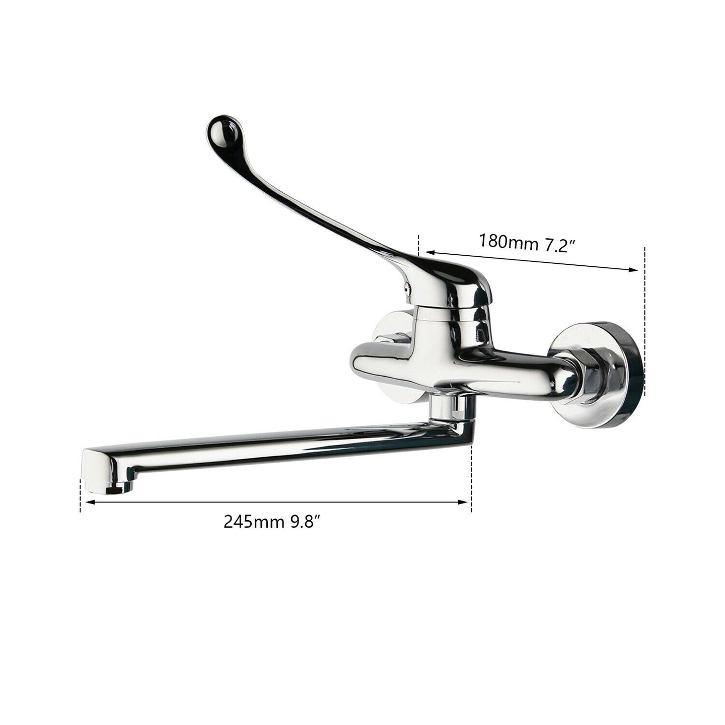 - Lange chroom uitloop van 24.5 CM gemeten vanaf de kraan.