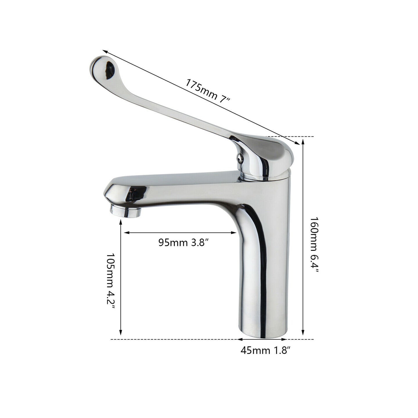 - Oversteek van de chroom kraan: 95 MM