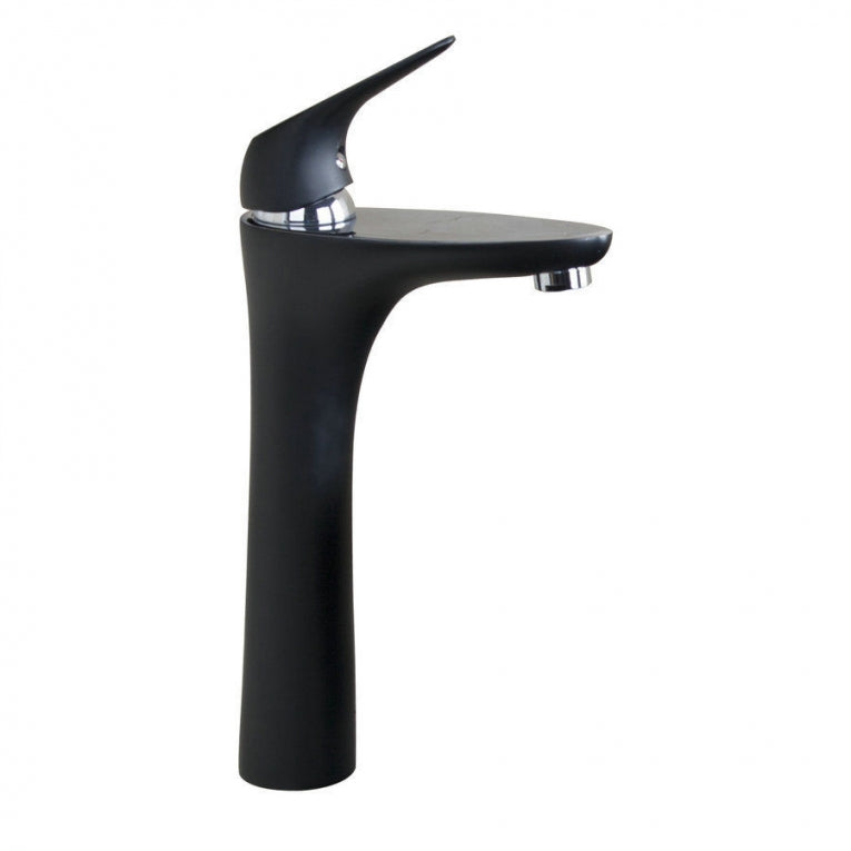 Moderne strakke zwarte wastafelkraan met elegante uitloop