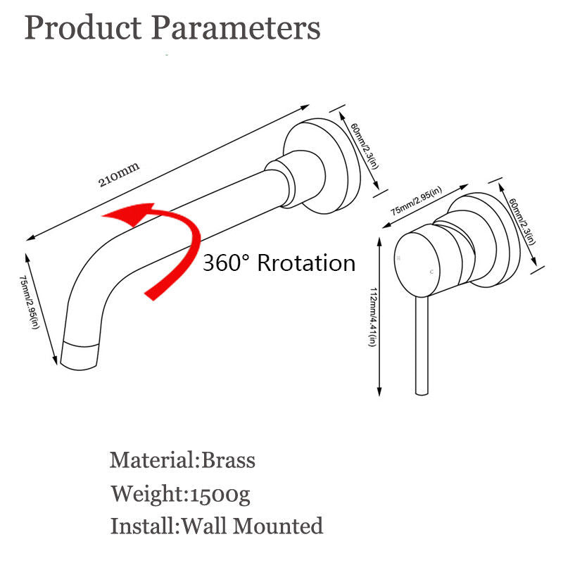 - Lengte oversteek van de bronzen muur kraan: 210 MM