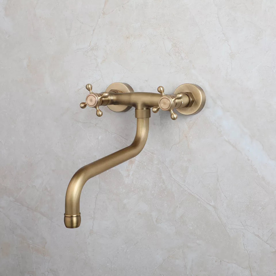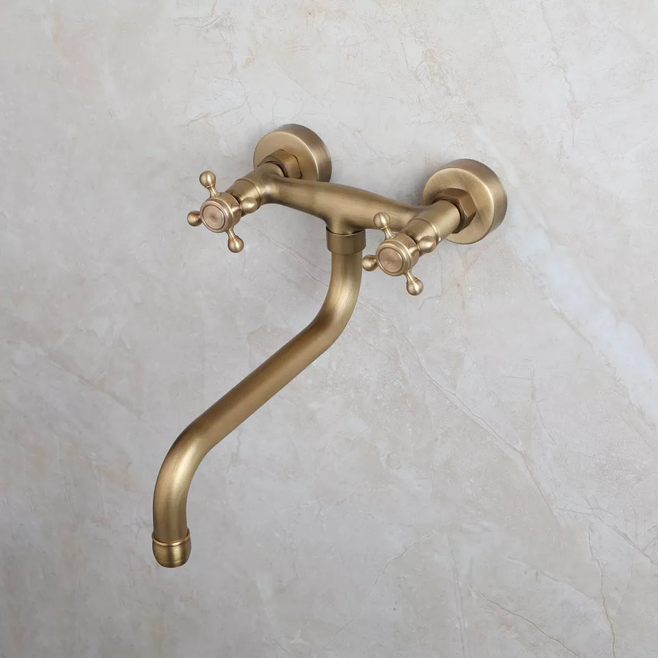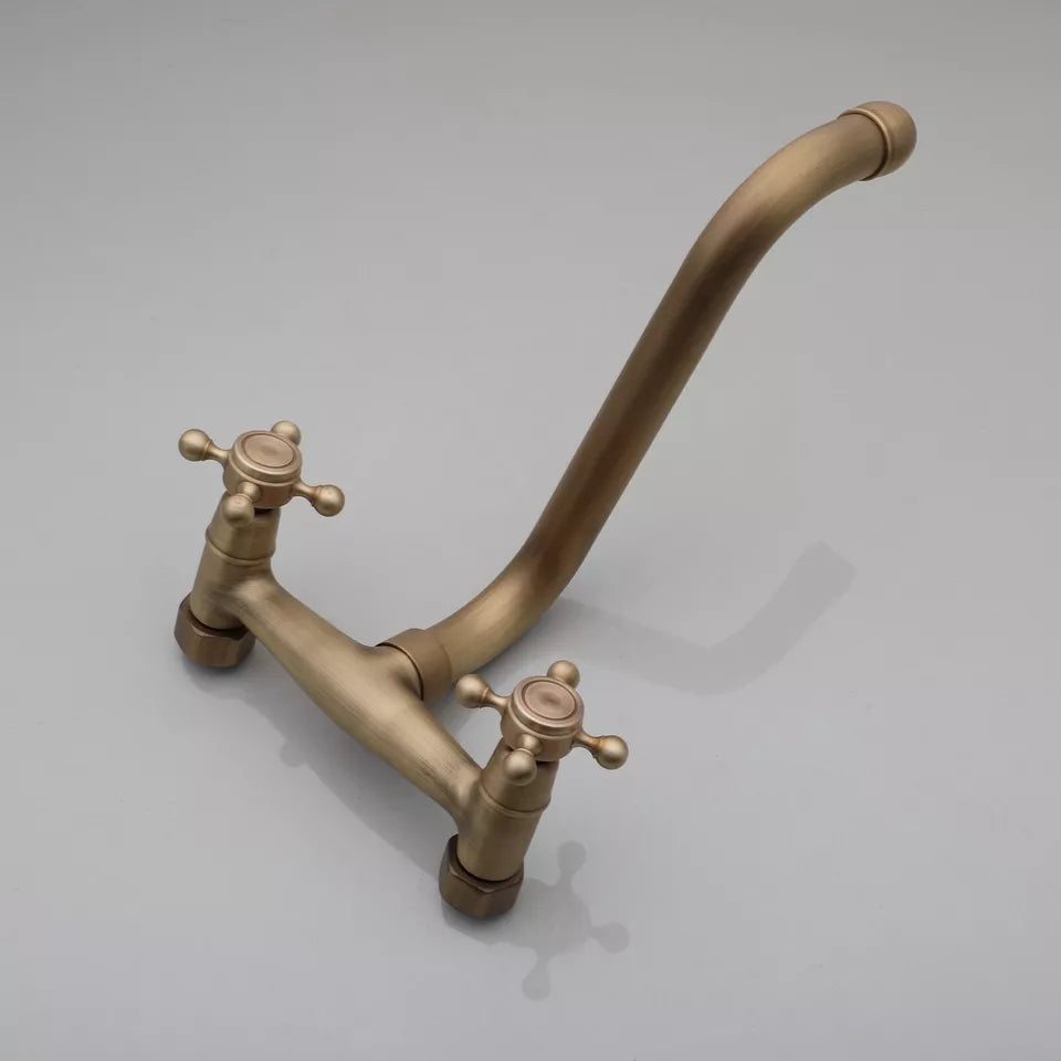Nostalgische bronskleurige mengkraan met lange uitloop.