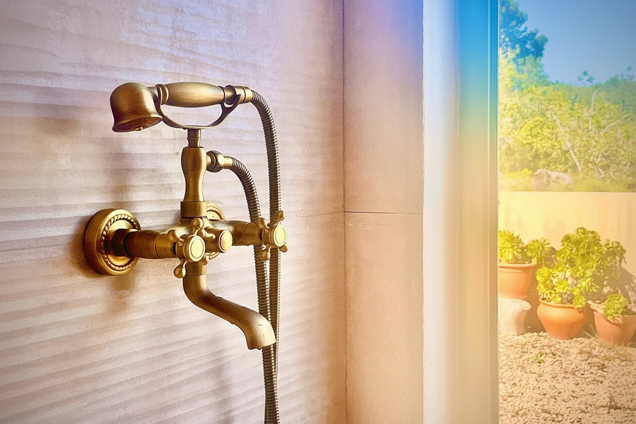 Nostalgische Bronzen Badkraan met "Telefoonlook" Handdouche – Voor Wandmontage