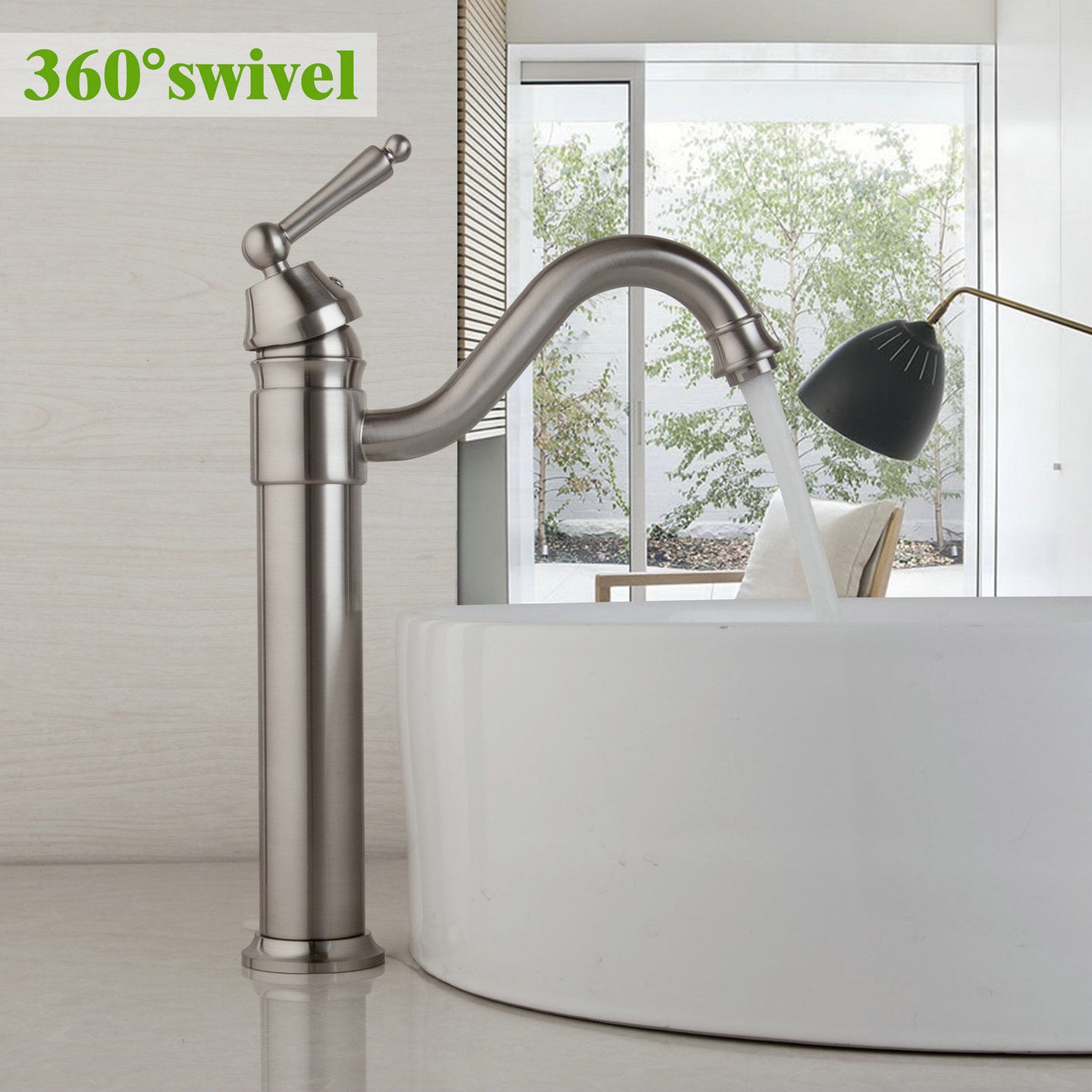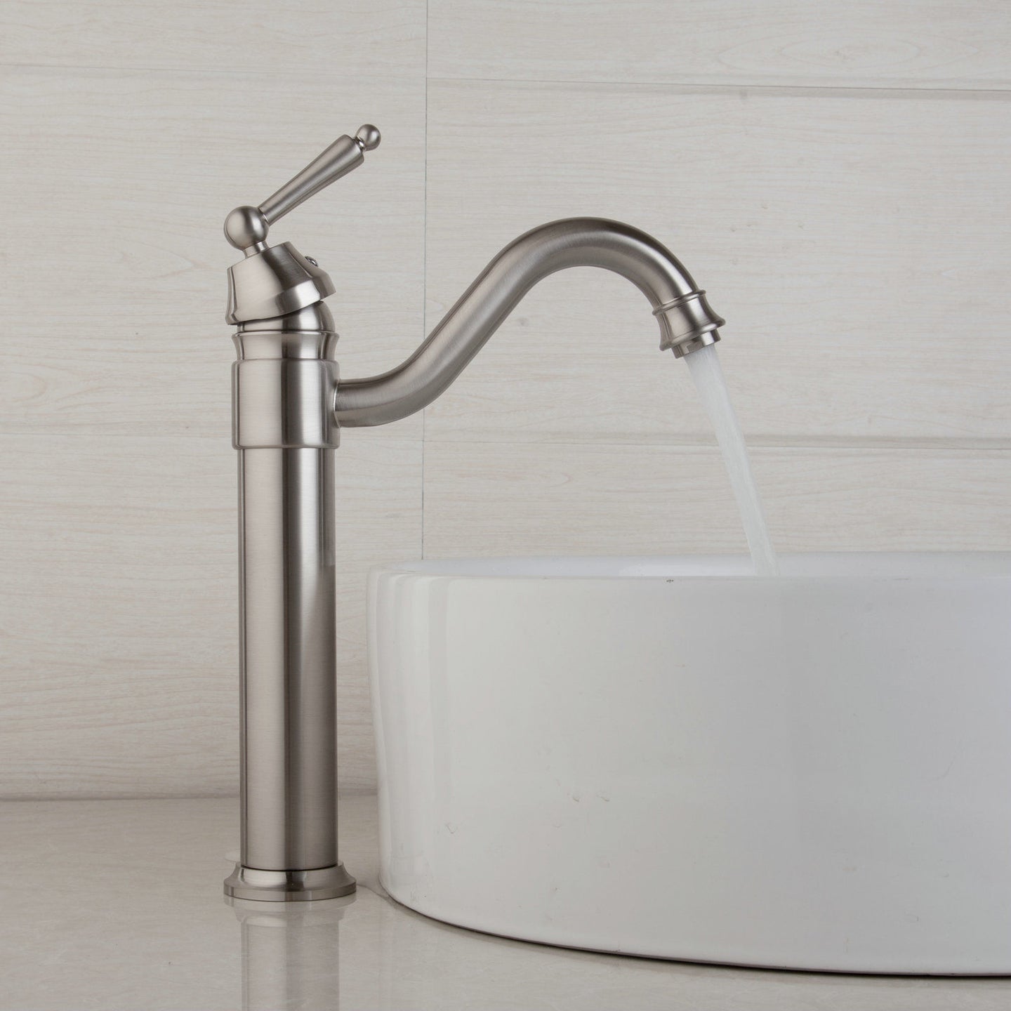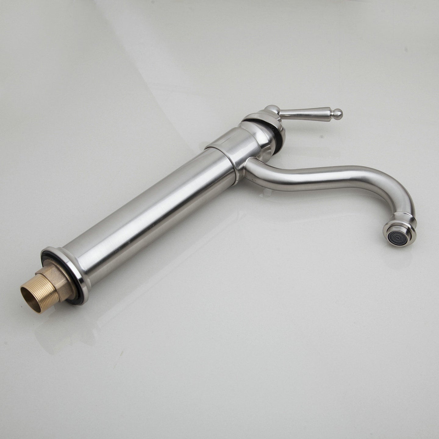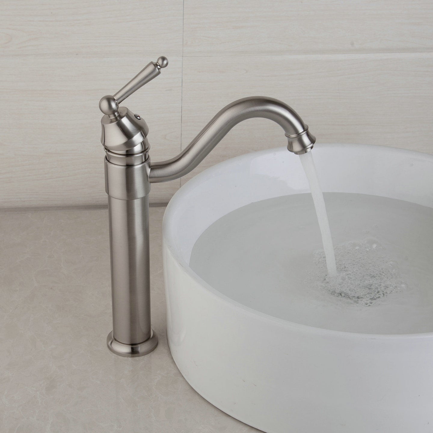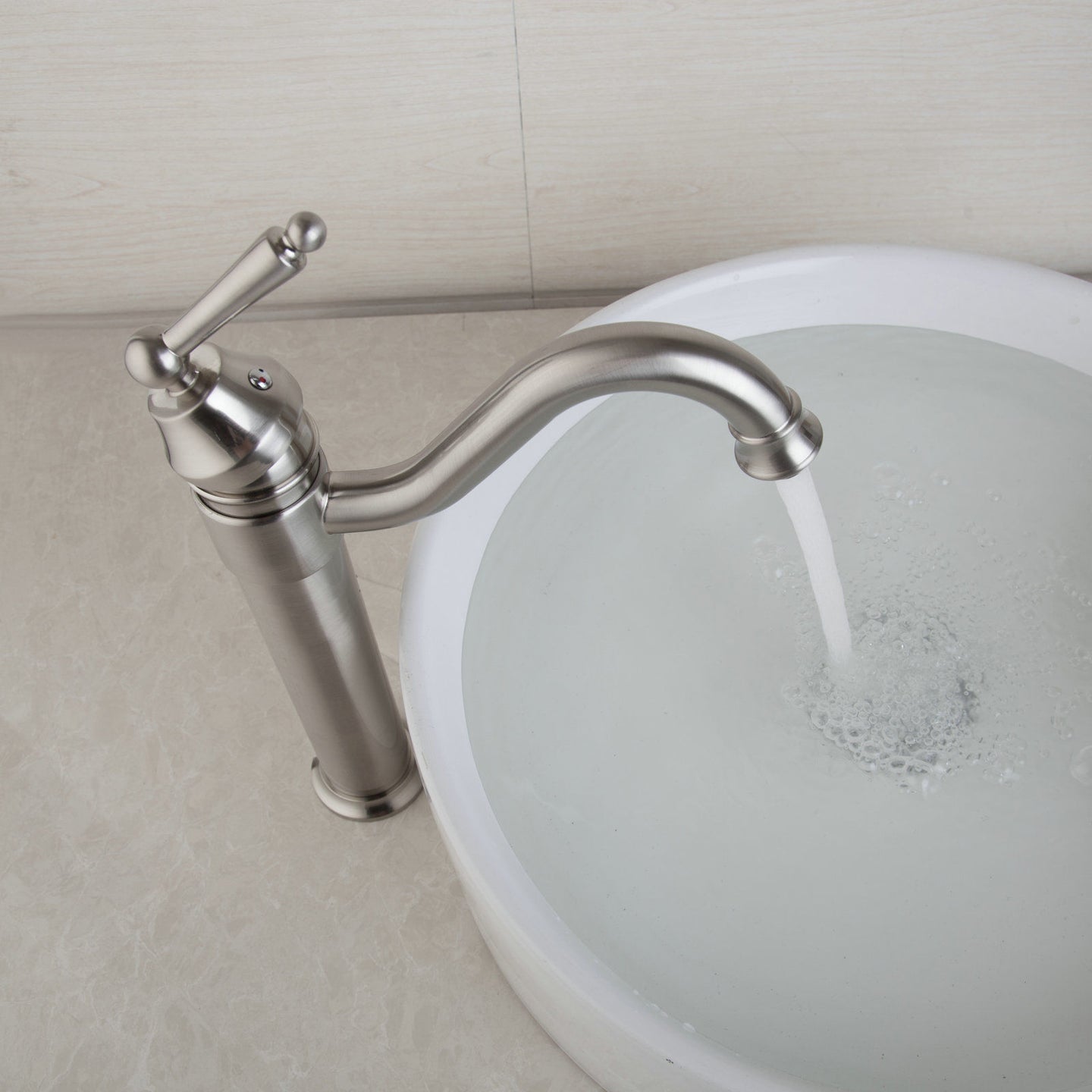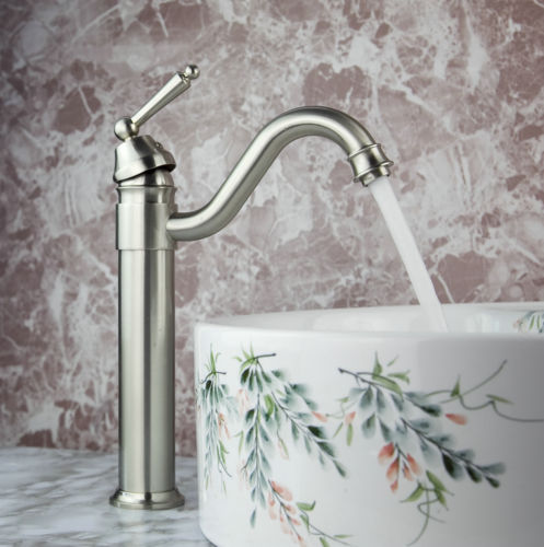 Mooie nostalgische geborstelde nikkel wastafelkraan zorgt voor een extra luxe uitstraling van uw badkamer.