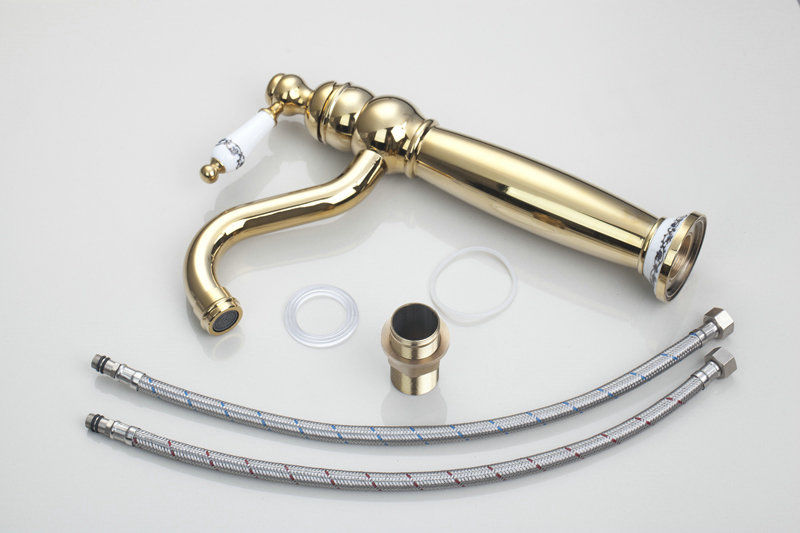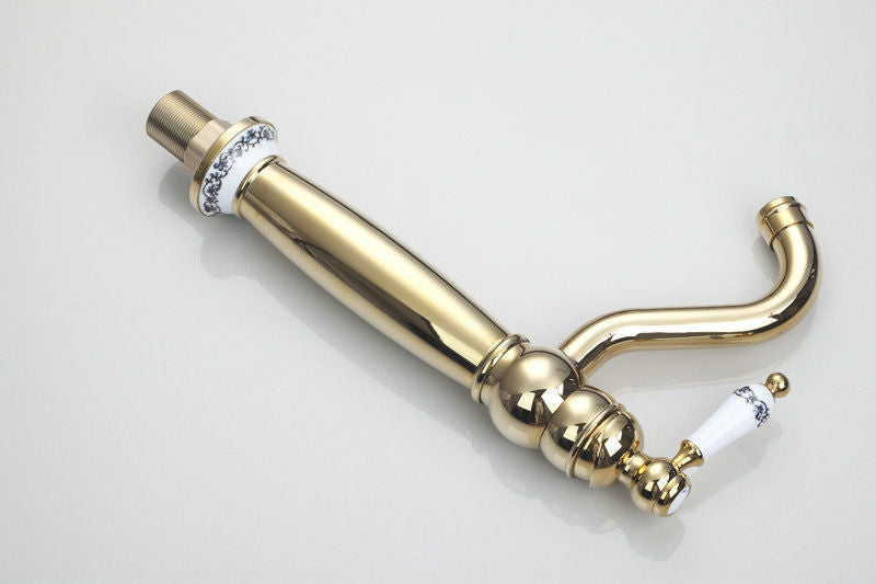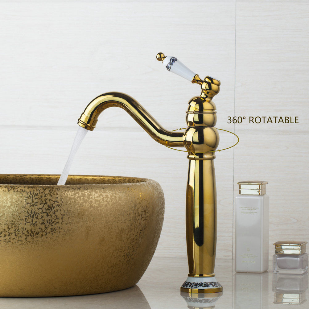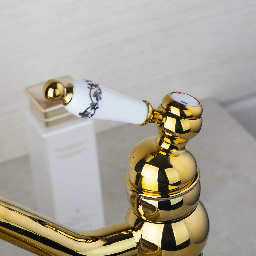 De kraan is met de grootste zorg vervaardigd uit massief messing en afgewerkt met een gouden chrome finish.Tevens is de mond van de kraan 360 graden draaibaar, dus ook geschikt voor uw keuken.