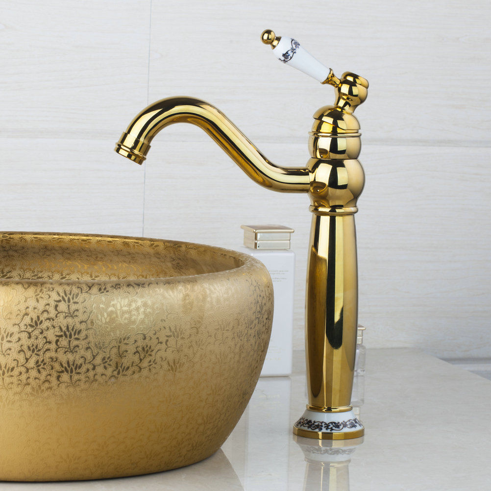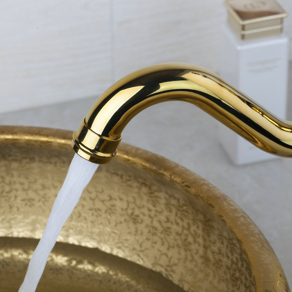 Deze nostalgische goudkleurige wastafelkraan zorgt voor een extra luxe uitstraling van uw badkamer.