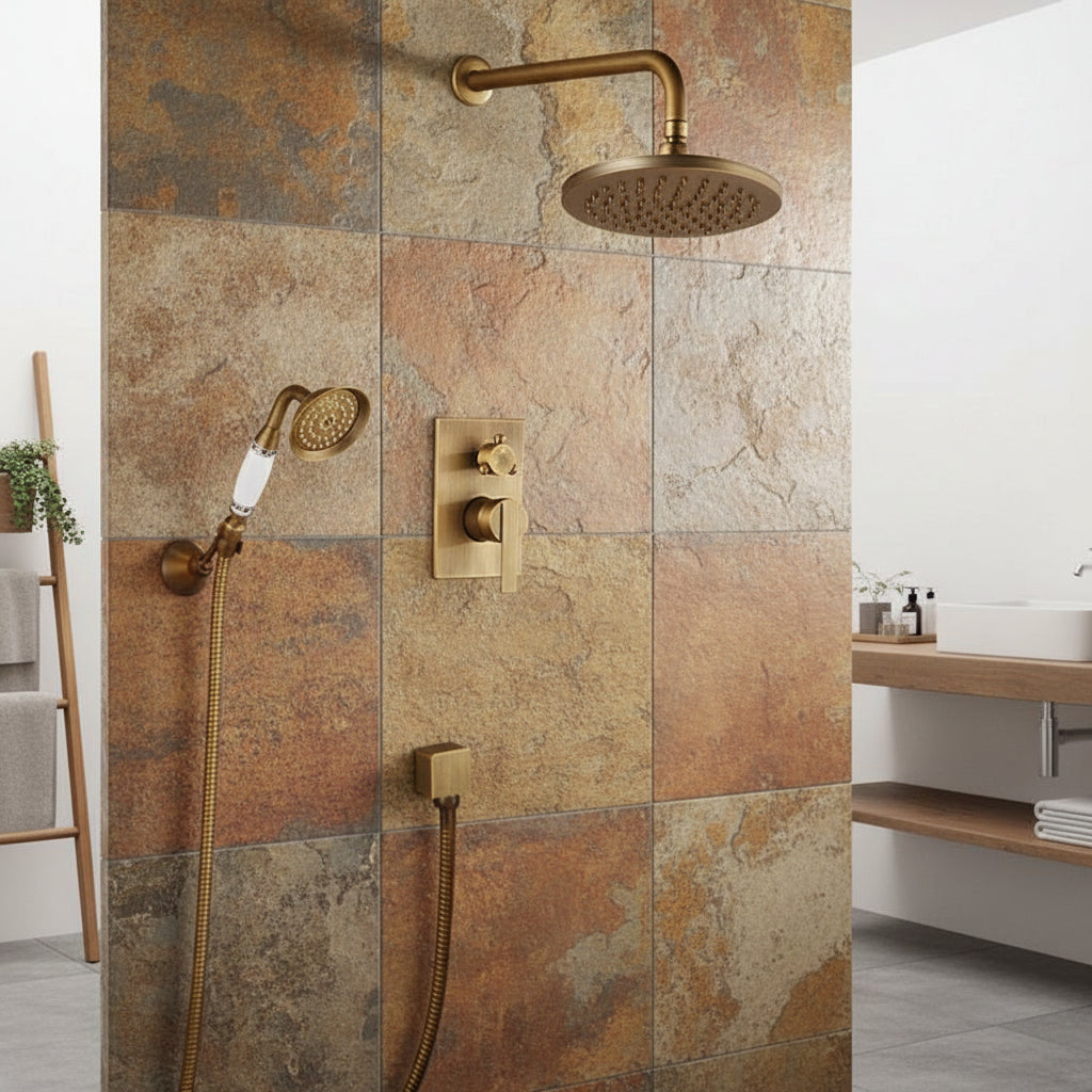 Breng een vleugje klassieke elegantie in uw badkamer met deze prachtige inbouw regendoucheset in antiek brons. Deze set combineert nostalgische charme met moderne functionaliteit, en is vervaardigd van hoogwaardige messing voor een luxe uitstraling en lange levensduur.