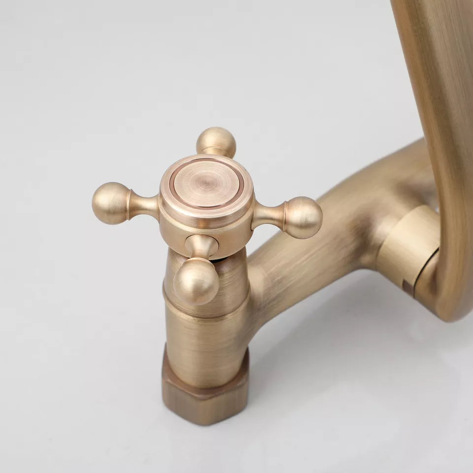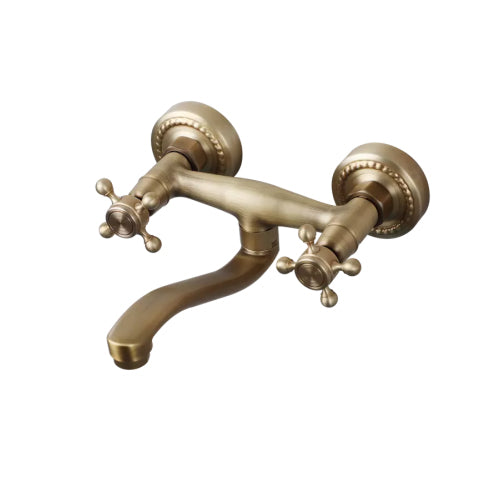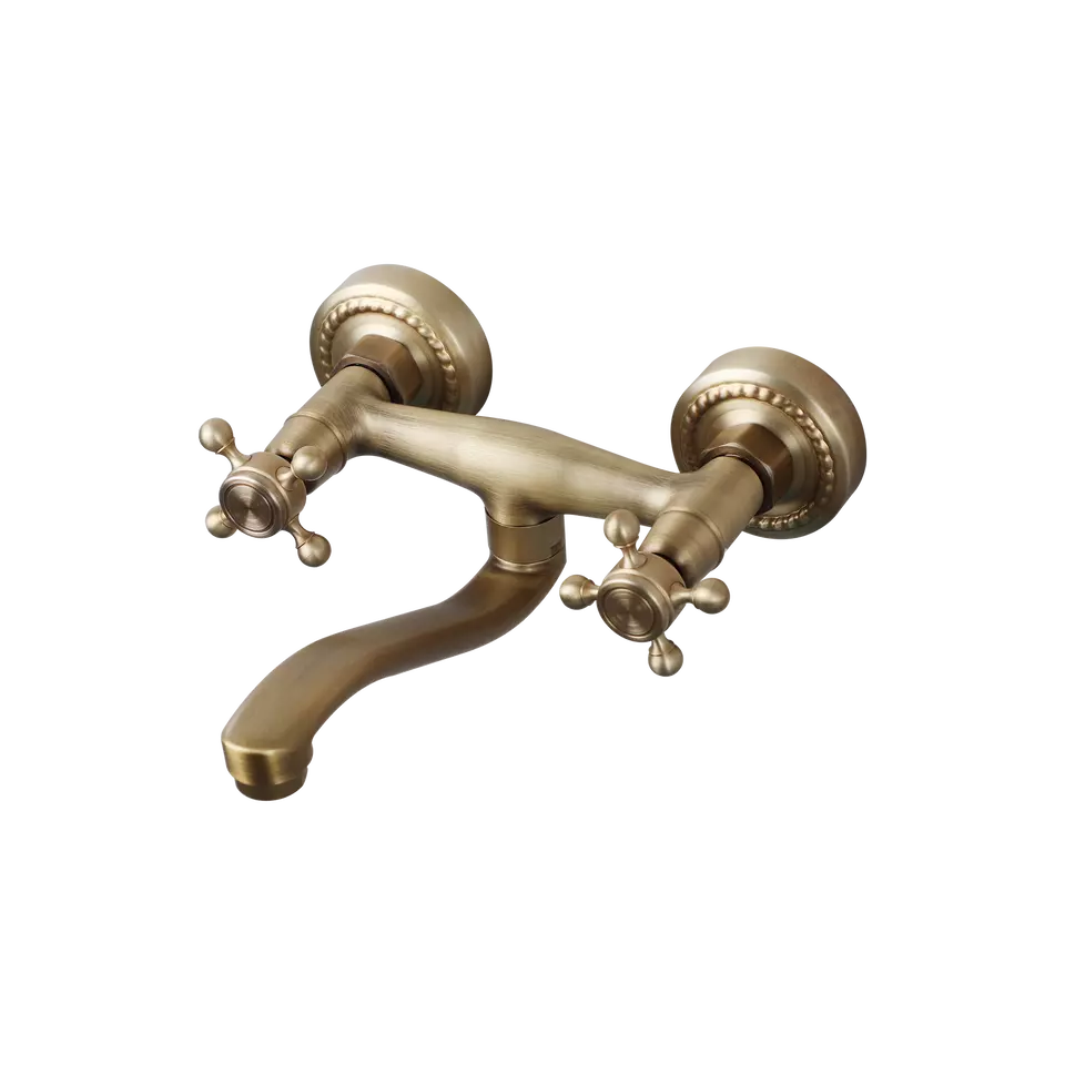 Nostalgische muurkraan bronskleurig met draaibare uitloop.