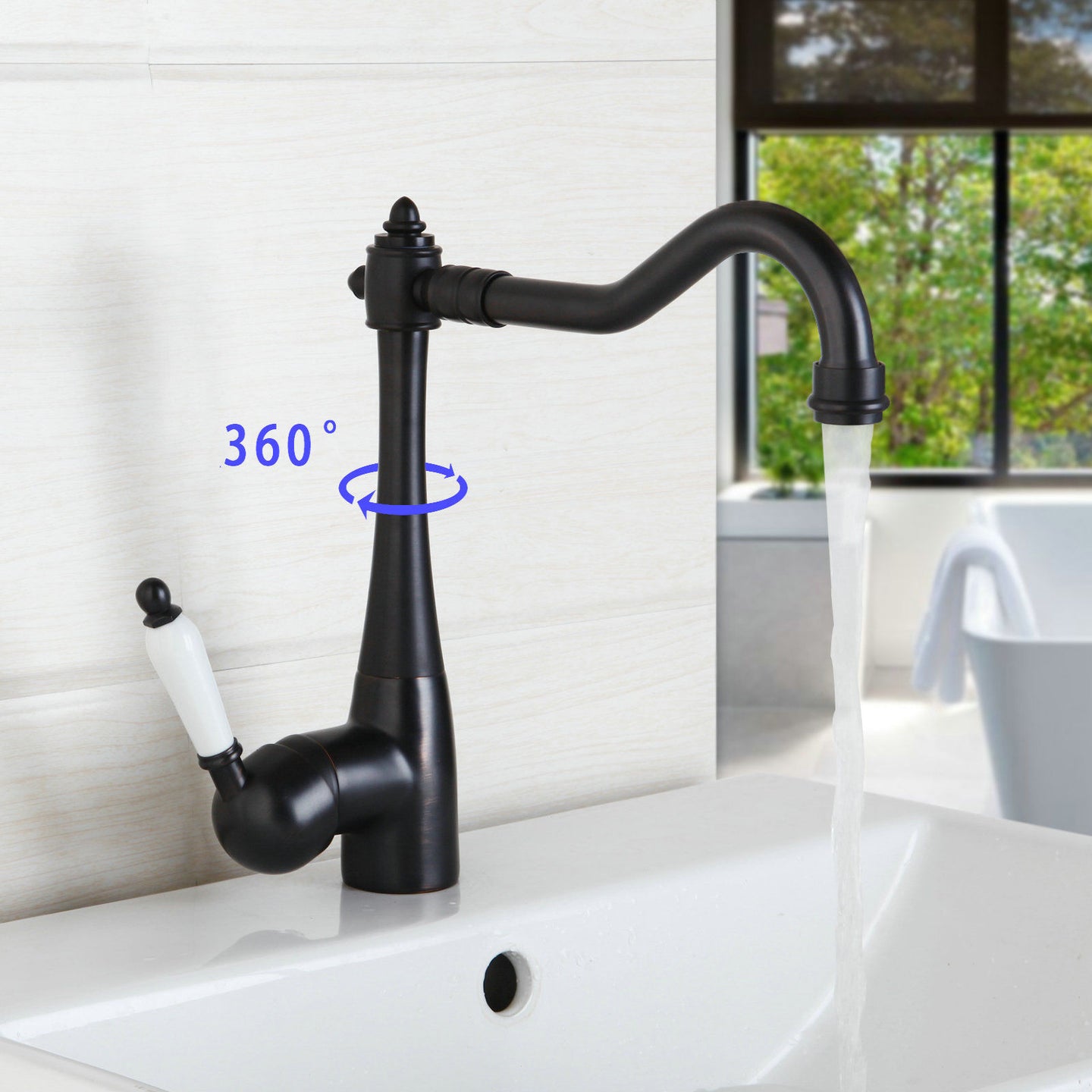 Elegante vintage wastafel kraan welke olie brons kleurig is afgewerkt:
