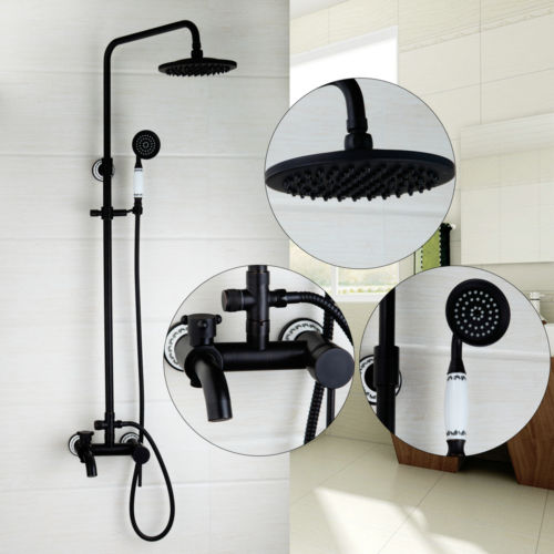 Deze olie bronzen douche set is zeker een aanwinst voor uw retro badkamer! (let wel, het is niet egaal zwart, maar donker/olie met een bronzen onderlaag)
