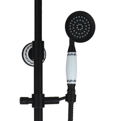 De olie bronzen douche heeft een badkraan functie, welke u kunt bedienen met de hendels op de kraan.