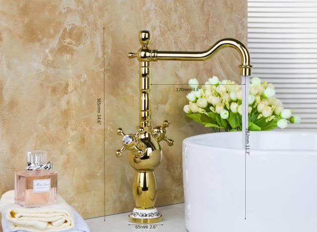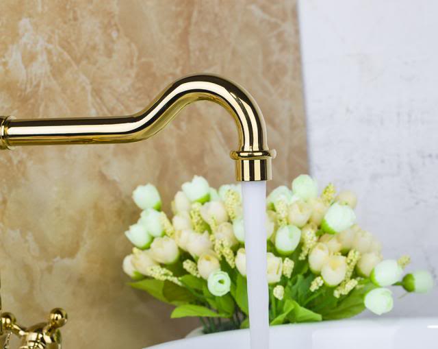 Nostalgische gouden wastafel kraan , welke draaibaar is(ook geschikt voor uw keuken).