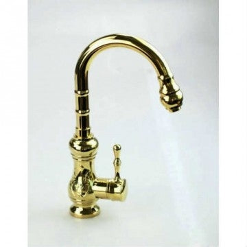 Elegante nostalgische wastafel kraan cq. keukenkraan welke goud is afgewerkt: