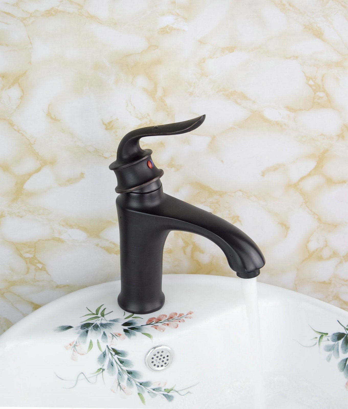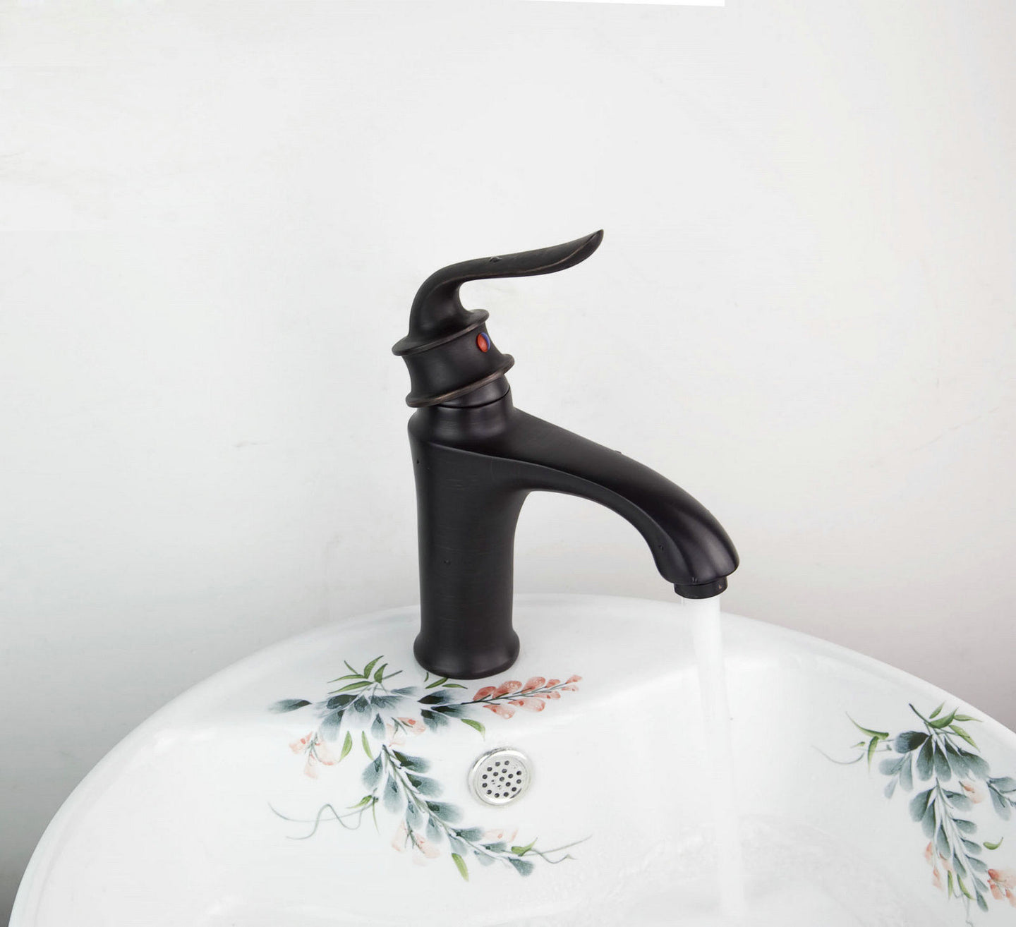 Nostalgische wastafelkraan welke olie bronskleurig is afgewerkt en er elegant uit ziet.