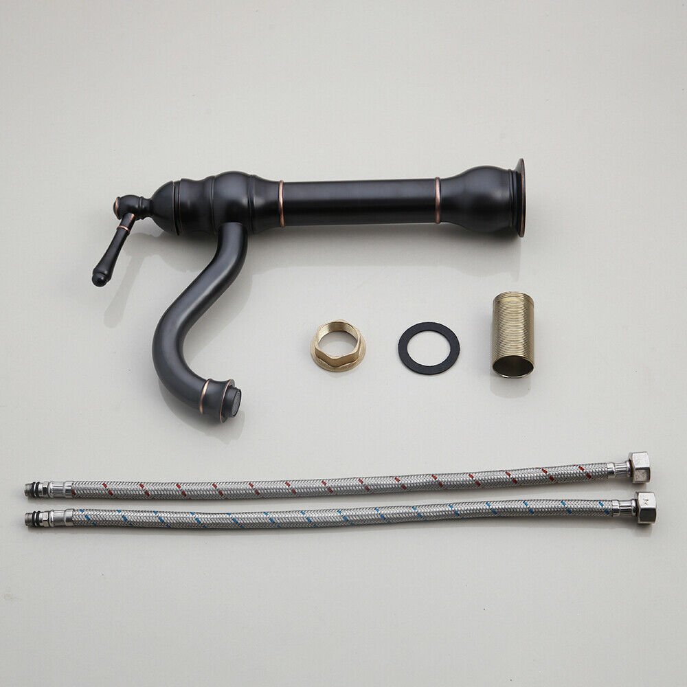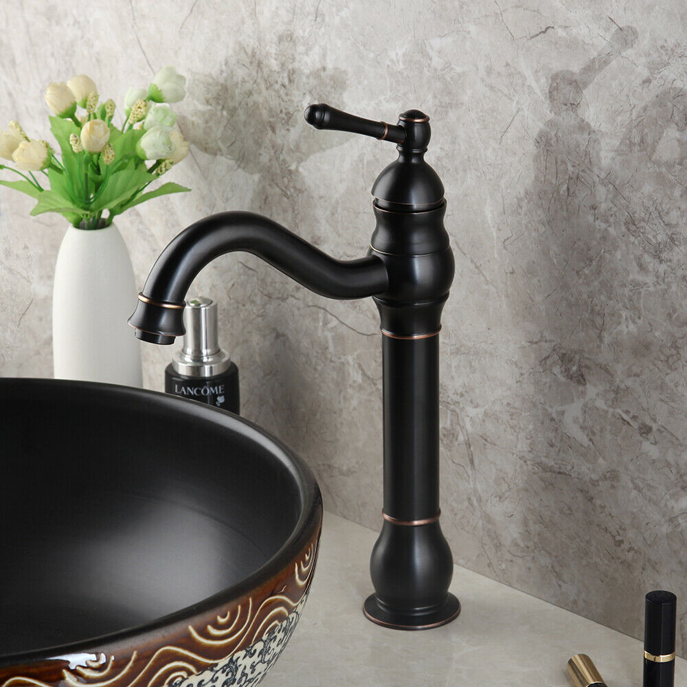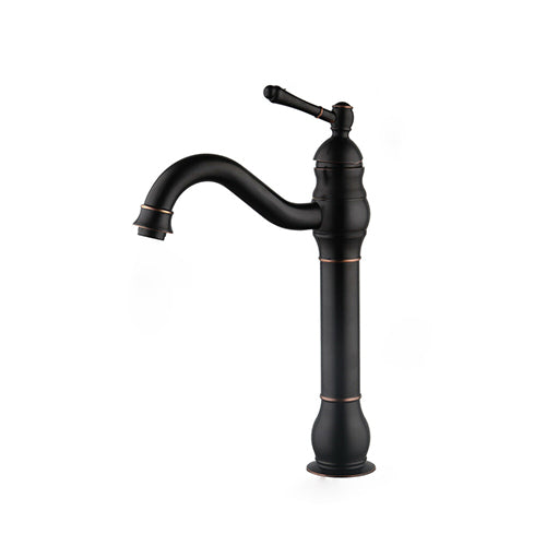 Voeg een vleugje elegantie toe aan uw badkamer met deze prachtige nostalgische wastafelkraan. De kraan, vervaardigd uit hoogwaardig messing, is afgewerkt met een gewreven olie bronzen laag die een warme, klassieke sfeer creëert. Dankzij de hoge uitloop is deze kraan perfect geschikt voor opbouw waskommen en biedt hij optimaal gebruiksgemak.