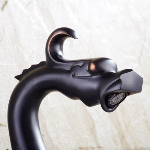 De kraan is met de grootste zorg vervaardigd uit massief messing en afgewerkt met een gewreven olie bronsrte afwerking in de vorm van een draak.