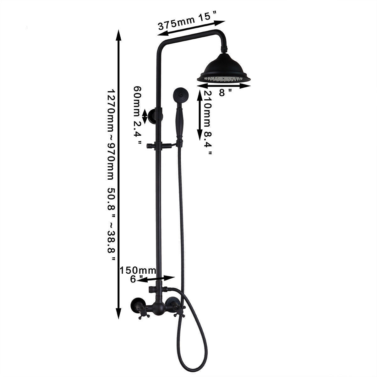 • De gewreven olie bronzen douche is in hoogte verstelbaar van 97 - 127 CM ( U kunt tijdens het installeren de bovenste pijp verder in de onderste pijp drukken)