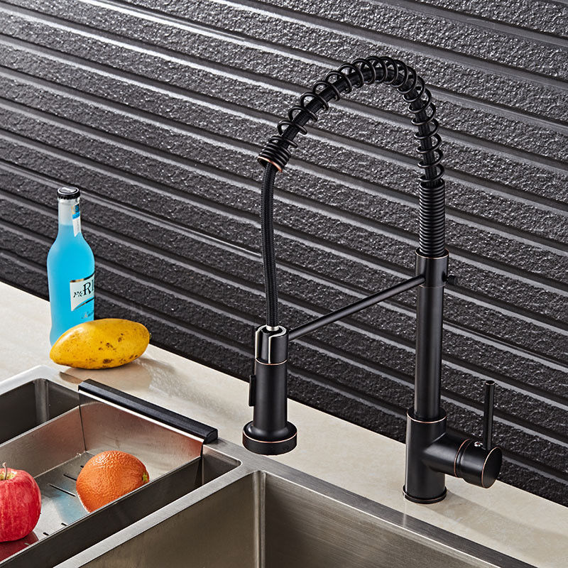 Olie bronzen pull out kraan zorgt voor een professionele look in uw keuken. U heeft de beschikking over een flexibele en uittrekbare sproeikop.