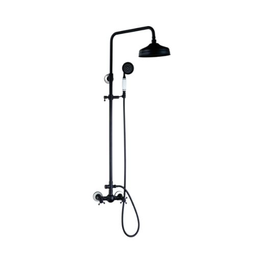 Deze zwarte olie douche set is zeker een aanwinst voor uw retro badkamer! (let wel, het is niet egaal zwart, maar zwart olie met een bronzen onderlaag)