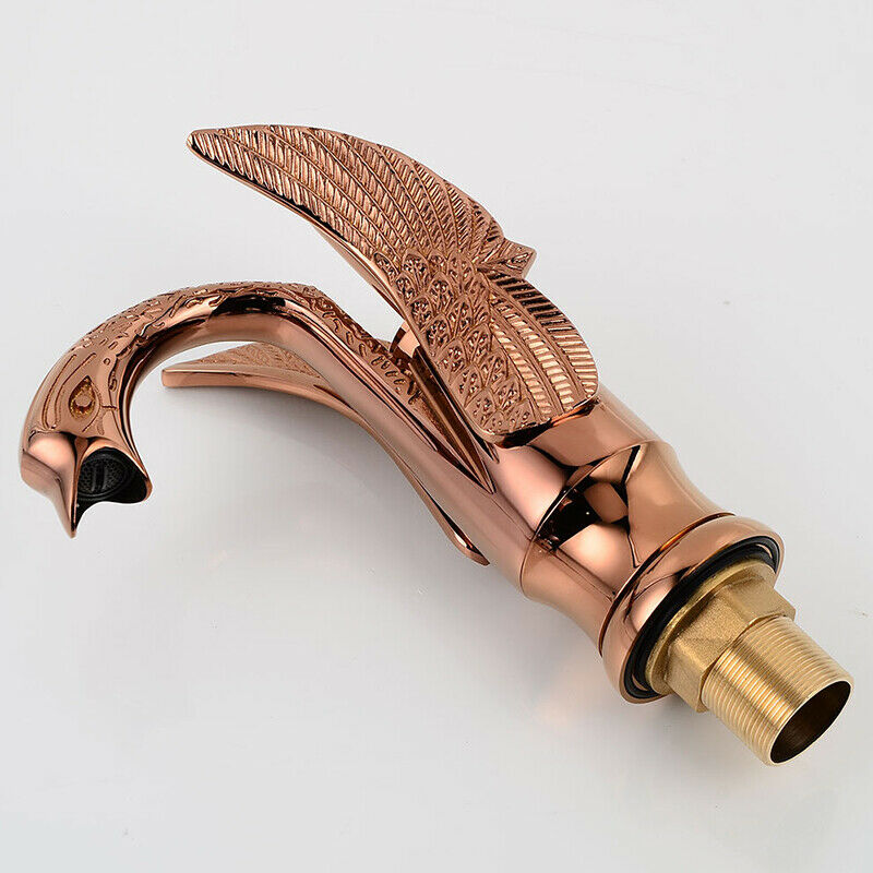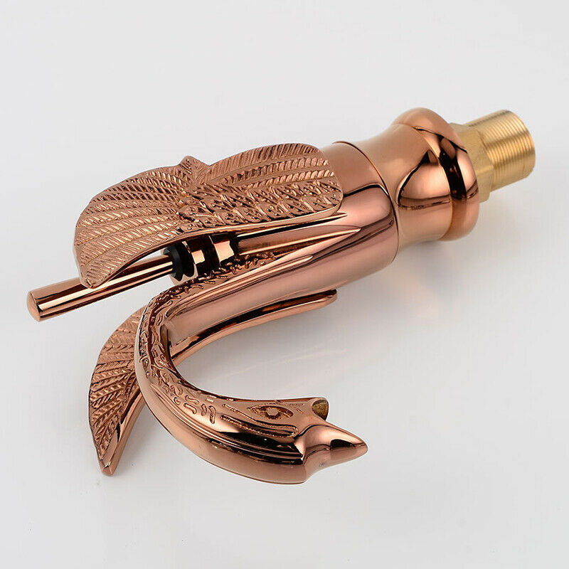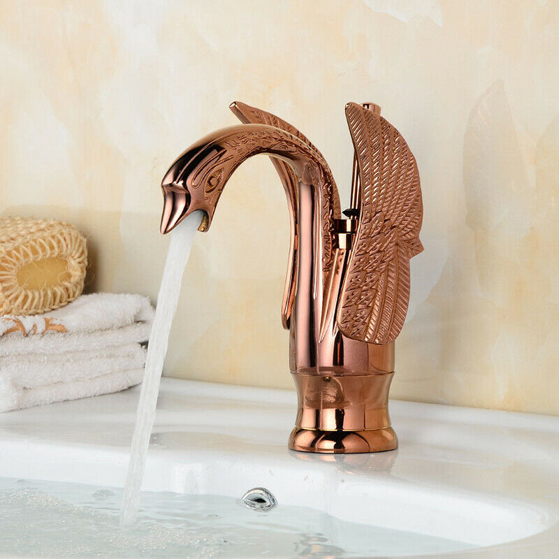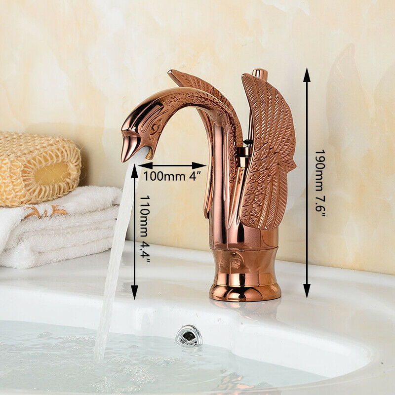 Deze wastafelkraan is met de grootste zorg vervaardigd uit massief messing en afgewerkt met een elegante rosé gouden afwerking in de vorm van een zwaan.