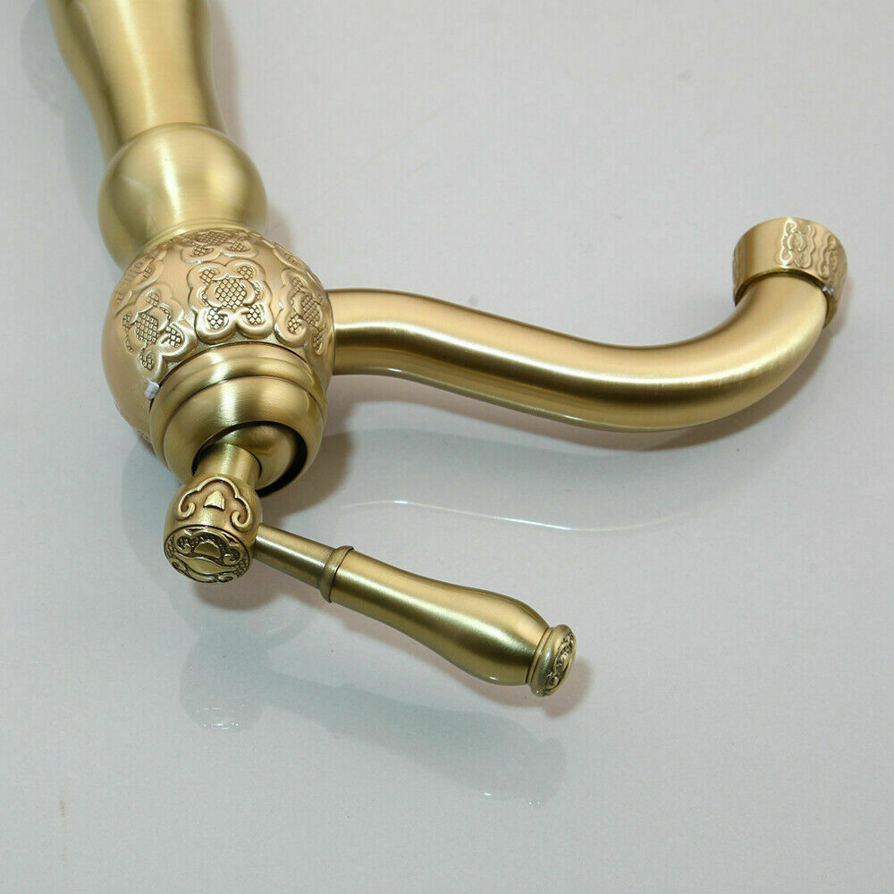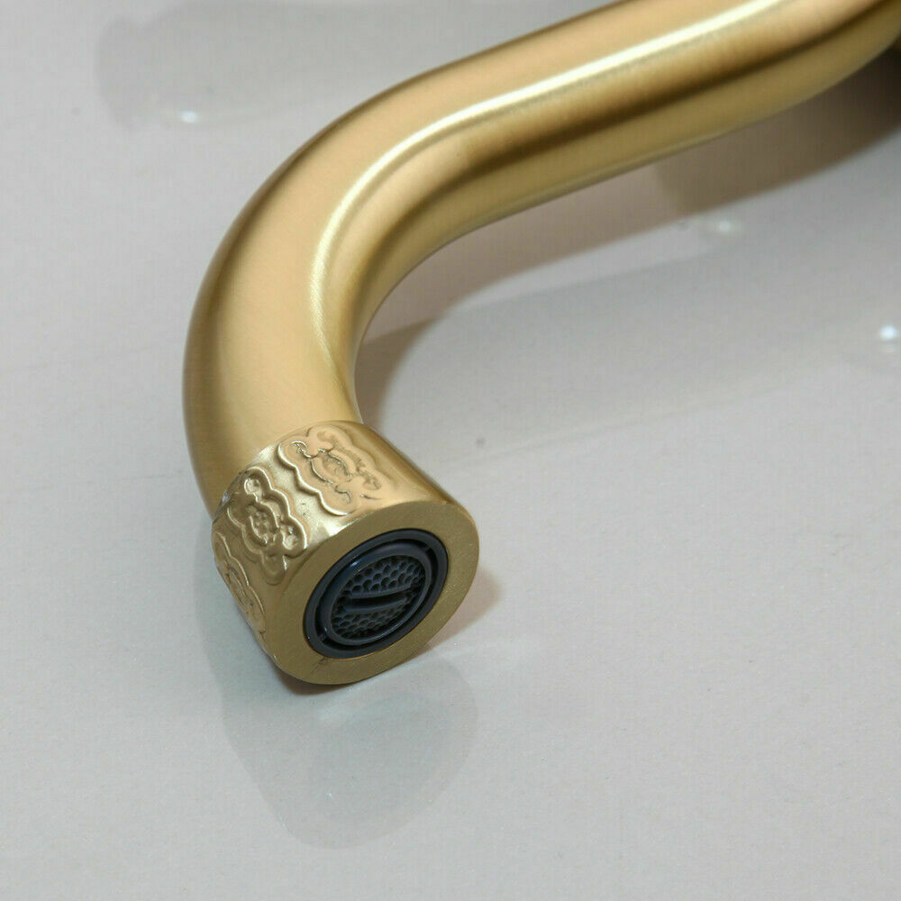 De kraan is met de grootste zorg vervaardigd uit massief messing en afgewerkt met een geborstelde gouden uitstraling.