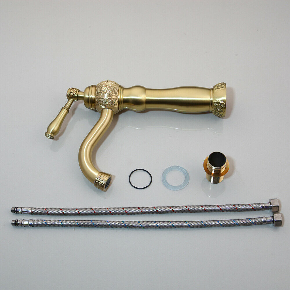 - Op deze geborsteld gouden wastafelkraan zit 12 maanden garantie.